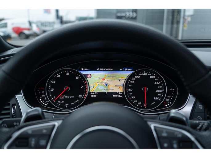 Er zijn van die momenten waarbij je een auto ziet en weet: "Hier klopt alles!" Zo ook bij deze spectaculaire Audi RS6 Avant. De ideale 'gezinsauto' voor de sportieve familie. De eerste eigenaar heeft deze RS samengesteld precies zoals je hem wilt hebben, er zijn geen wens onbeantwoord gebleven. Beginnend bij de stijlvolle kleurstelling in Audi Exclusive bijpassend vollederen interieur. De finishing touch maken de 21 inch RS Design wielen in Matt. Aan alle elementen is te zien dat de eerste eigenaar deze Audi RS6 met de grootst mogelijk zorg smaakvol heeft samengesteld: