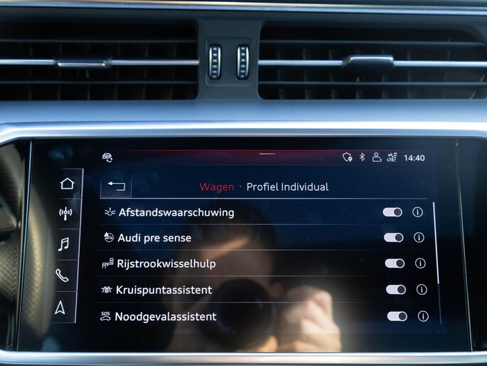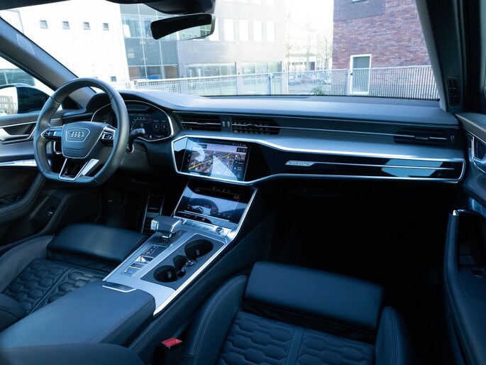 In de Audi RS6 Avant heeft jouw veiligheid en die van jouw omgeving prioriteit. Een belangrijke bijdrage aan de veiligheid onderweg levert de verkeersbord-detectie. Het Lane-keeping systeem registreert permanent of je binnen de lijnen van de rijstrook blijft; dwaal je onbedoeld af, dan waarschuwt het systeem en corrigeert de koers. Forward collision warning is een automatisch waarschuwingssysteem dat direct in werking treedt bij gevaar voor een kop-staartbotsing. Je bent mede dankzij head-up display, dodehoekdetectie, brake assist en bandenspanningcontrolesysteem steeds veilig onderweg.
