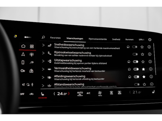 - Buitenspiegels elektrisch verstelbaar, verwarmbaar en inklapbaar, aan beide kanten automatisch dimmend