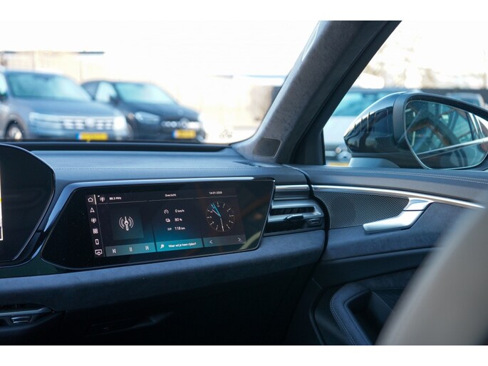 Deze Audi A6 (2026) is uitgevoerd in zwarte carrosseriekleur en verkeert in een uitzonderlijk luxe configuratie. Het interieur is afgewerkt in zwart nappa leder met wit contraststiksel, gecombineerd met alcantara hemelbekleding, wat zorgt voor een exclusieve en hoogwaardige uitstraling.