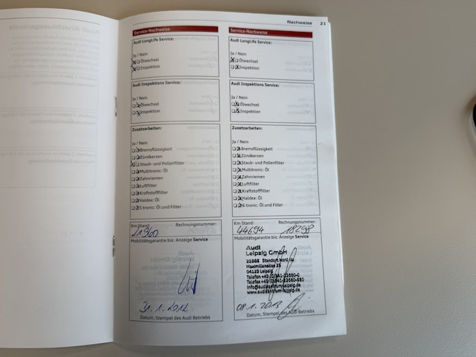 Onderhoudsboekjes: Aanwezig
