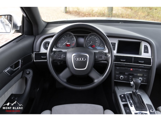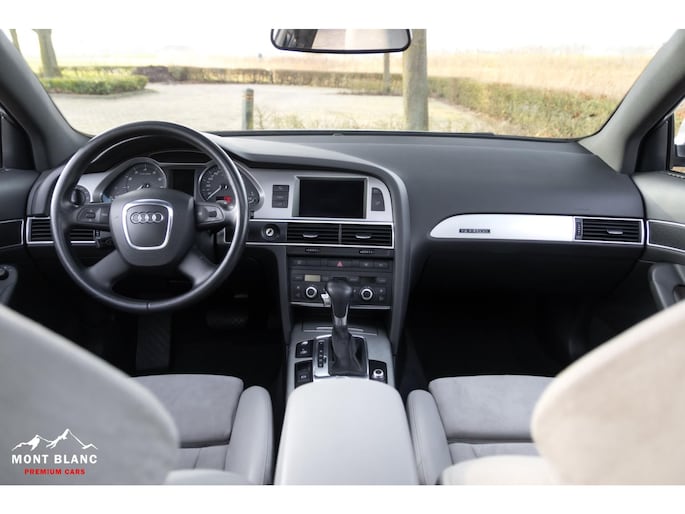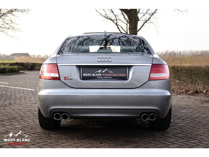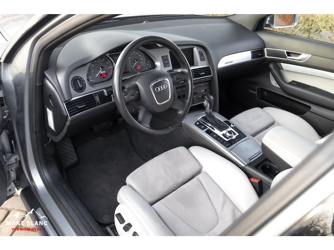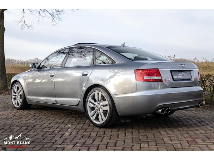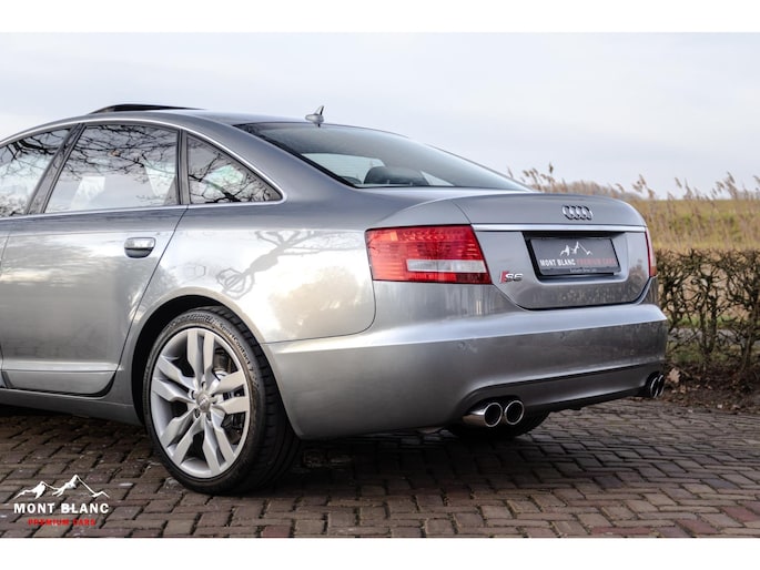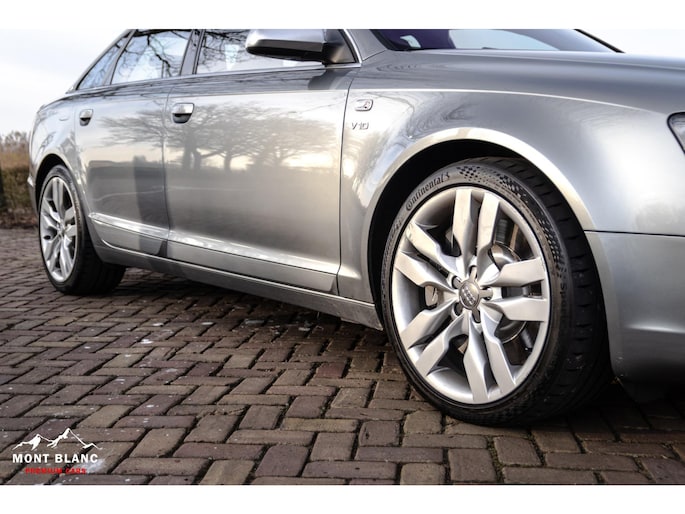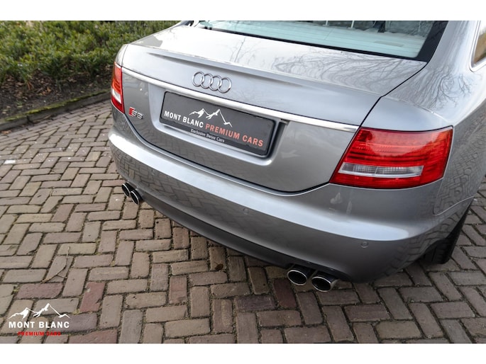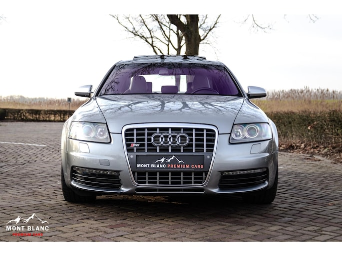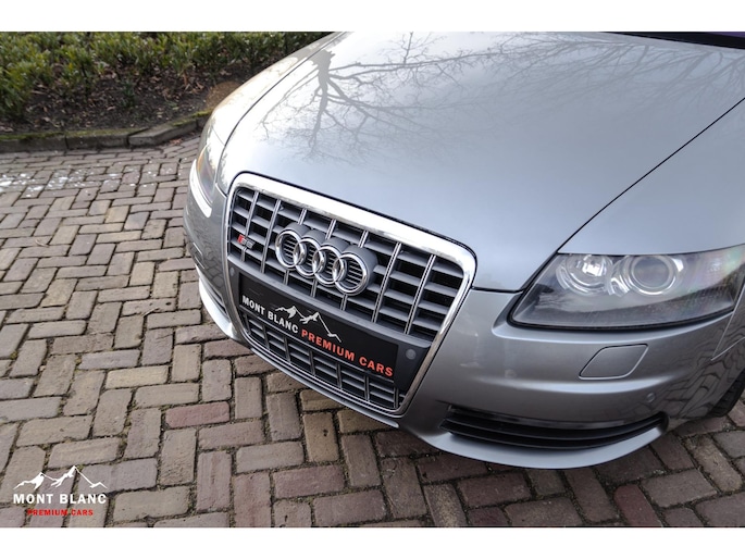 Te koop aangeboden een bijzonder mooie en zeer verzorgde Audi S6 V10 5.2 sedan, uitgevoerd in stijlvol lichtgrijs metallic en gecombineerd met een exclusief ivoren lederen/alcantara interieur. Deze samenstelling geeft de auto een luxe en tijdloze uitstraling, perfect passend bij het karakter van deze krachtige sportsedan.