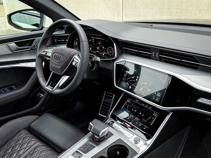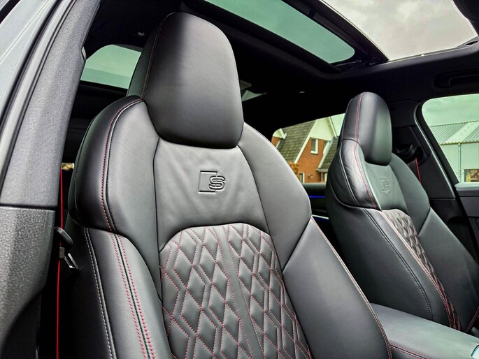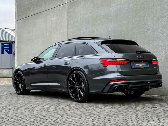 FACELIFT! NIEUW MODEL 2024!|Audi Exclusive|S-Line interieur|S-Line exterieur|55 TFSIe Plug in Hybride 367pk / 500Nm|Quattro 4-wielaandrijving|S-Tronic Automaat|S-Line Daytona Grey Pearl Metallic|Dubbel Panoramisch glazen schuif-/kanteldak|Elektrisch bedienbare zonwering panoramadak V+A|Virtual Cockpit Plus|Premium leder pakket Audi Exclusive o.a. dashboard, deurpanelen, middenconsole incl. Audi Exclusive Rode stiksel|Zwart Valcona lederen Supersport schaalstoelen/ RS kuipstoelen incl. Diamond Cross stitching Audi Exclusive Rode stiksels|Elektrisch verstelbare voorstoelen|Bestuurders stoel incl. geheugenfunctie / Memory|Elektrisch verstelbare lendensteun|Stuurwiel verwarming|Stoelverwarming|Geperforeerd lederen 3-spaaks S-line Sportstuurwiel incl. verwarming en Audi Exclusive Rode stiksel|Audi Exclusive Alcantara airbag incl. Audi Exclusive Rode stiksel|Audi Exclusive Gordels met Rood Accenten|F1 schakelflippers|LED dagrijverlichting|LED HD Matrix koplampen met Dynamische lichtanimatie|LED achterlichten|3D / Dynamische knipperlichten voor- & achterzijde|Elektrisch bedienbare achterklep|Afstandswaarschuwing|ACC / Adaptieve Cruise Control|Lane Assist|Side Assist / Dodehoeksensor|HUD / Head Up Display|Grootlichtassist|Audi Pre Sense|Coming-/Leaving Home|Attention Assist|Licht- & Regensensor|Navigatiesysteem groot MMI Plus|Uitgebreide boordcomputer|Bluetooth|B&O / Bang & Olufsen look soundsysteem incl. Subwoofer|DAB+ / Digital Audio Broadcasting|Audi Connect Key|Voice Control|APP Connect|Apple CarPlay / Android Auto|Audi Drive Select - Instelbare rijprofielinstellingen|Area View / 360° Camera|Vooruitrijcamera|Rear View / Achteruitrijcamera|Parkeersensoren voor- & achterzijde|Parkassist / Automatisch inparkeersysteem|19 inch S-line velgen|*Optioneel: Getoonde 22inch Black Performance velgen|Climate Control 4-zones|Keyless Entry & Keyless GO|Spiegelpakket - Elektrisch verwb.-/verstelb. + inklapbare buitenspiegels|Warmtewerende voorruit|Elektrische ramen voor- & achterzijde|Automatisch dimmendebinnenspiegel- & buitenspiegels|Ambiance sfeerverlichting Premium|Audi Premium Sound incl. Subwoofer|Zwarte hemelbekleding|RVS Sportpedalen|RVS S-line instaplijsten incl. LED verlichting|Aluminium interieurlijsten|Privacy Glass|Black Pack / Zwart optiekpakket|Zwarte Audi emblemen rondom|Zwarte dakrailing|Hoogglans zwarte grille|Hoogglans zwarte raamomlijsting|Hoogglans zwarte Audi emblemen|Hoogglans zwarte buitenspiegels|Audi OEM Design Black S6 diffuser + Hoogglans zwarte uitlaat eindstukken|Rode Audi Sport S remklauwen|Voorruitverwarming incl. voorklimatisering|Standkachel / Interieurvoorverwarming fabrieksaf|Elektrisch wegklapbare trekhaak fabrieksaf|