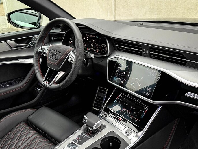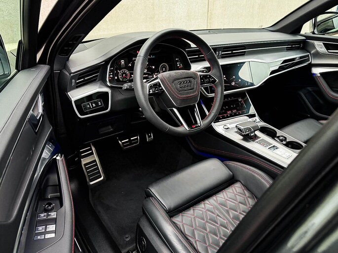 Quattro 4-wielaandrijving|S-Tronic Automaat|S-Line Daytona Grey Pearl Metallic|Dubbel Panoramisch glazen schuif-/kanteldak|Elektrisch bedienbare zonwering panoramadak V+A|Virtual Cockpit Plus|Premium leder pakket Audi Exclusive o.a. dashboard, deurpanelen, middenconsole incl. Audi Exclusive Rode stiksel|Zwart Valcona lederen Supersport schaalstoelen/ RS kuipstoelen incl. Diamond Cross stitching Audi Exclusive Rode stiksels|Elektrisch verstelbare voorstoelen|Bestuurders stoel incl. geheugenfunctie / Memory|Elektrisch verstelbare lendensteun|Stuurwiel verwarming|Stoelverwarming|Geperforeerd lederen 3-spaaks S-line Sportstuurwiel incl. verwarming en Audi Exclusive Rode stiksel|Audi Exclusive Alcantara airbag incl. Audi Exclusive Rode stiksel|Audi Exclusive Gordels met Rood Accenten|F1 schakelflippers|LED dagrijverlichting|LED HD Matrix koplampen met Dynamische lichtanimatie|LED achterlichten|3D / Dynamische knipperlichten voor- & achterzijde|Elektrisch bedienbare achterklep|Afstandswaarschuwing|ACC / Adaptieve Cruise Control|Lane Assist|Side Assist / Dodehoeksensor|HUD / Head Up Display|Grootlichtassist|Audi Pre Sense|Coming-/Leaving Home|Attention Assist|Licht- & Regensensor|Navigatiesysteem groot MMI Plus|Uitgebreide boordcomputer|Bluetooth|B&O / Bang & Olufsen look soundsysteem incl. Subwoofer|DAB+ / Digital Audio Broadcasting|Audi Connect Key|Voice Control|APP Connect|Apple CarPlay / Android Auto|Audi Drive Select - Instelbare rijprofielinstellingen|Area View / 360° Camera|Vooruitrijcamera|Rear View / Achteruitrijcamera|Parkeersensoren voor- & achterzijde|Parkassist / Automatisch inparkeersysteem|19 inch S-line velgen|*Optioneel: Getoonde 22inch Black Performance velgen|Climate Control 4-zones|Keyless Entry & Keyless GO|Spiegelpakket - Elektrisch verwb.-/verstelb. + inklapbare buitenspiegels|Warmtewerende voorruit|Elektrische ramen voor- &achterzijde|Automatischdimmendebinnenspiegel- & buitenspiegels|Ambiance sfeerverlichting Premium|Audi Premium Sound incl. Subwoofer|Zwarte hemelbekleding|RVS Sportpedalen|RVS S-line instaplijsten incl. LED verlichting|Aluminium interieurlijsten|Privacy Glass|Black Pack / Zwart optiekpakket|Zwarte Audi emblemen rondom|Zwarte dakrailing|Hoogglans zwarte grille|Hoogglans zwarte raamomlijsting|Hoogglans zwarte Audi emblemen|Hoogglans zwarte buitenspiegels|Audi OEM Design Black S6 diffuser + Hoogglans zwarte uitlaat eindstukken|Rode Audi Sport S remklauwen|Voorruitverwarming incl. voorklimatisering|Standkachel / Interieurvoorverwarming fabrieksaf|Elektrisch wegklapbare trekhaak fabrieksaf|