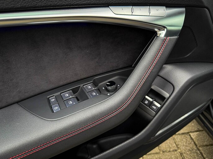 NIEUW MODEL| FACELIFT MODEL 2024|*LET OP: 1e kentekenregistratie 27-09-2023. Een werkelijk schitterende Audi A6 Avant 55 TFSI e 367pk Quattro Competition S-Tronic Automaat S-Line S Edtiton Pro Line S Facelift! Dit origineel Audi Exclusive dealer exemplaar is afkomstig van 1é eigenaar, volledig door 1 en dezelfde Audi dealer onderhouden met een zeer interessante tellerstand van slechts 57.439 kilometer. Bijzonder royaal Audi Exclusive geconfigureerd door een echt “liefhebber” oftewel voorzien van een zeer onderscheidende fabrieksconfiguratie; denk aan de S-Line Daytona Grey Pearl metallic lak gecombineerd met het Zwart optiekpakket, de elektrisch verstelbare zwart Valcona lederen RS kuipstoelen incl. Audi Exclusive Rode Diamond Cross stitching en geheugen fuctie / Memory, Audi Exclusive Alcantara airbag incl. Rode Stiksels + Geperforeerd & verwarmde stuurwiel, Premium leder pakket Audi Exclusive o.a. dashboard, deurpanelen, middenconsole incl. Audi Exclusive Rode stiksel, HUD/Head-up Display, HD Matrix Dynamische LED koplampen, 360° Camera/ Area View, Audi Exclusive Gordels met Rood Accenten, Black Pack / Zwart optiekpakket, Elektrisch wegklapbare trekhaak fabrieksaf, en natuurlijk niet te missen het Dubbele Panoramisch glazen schuif-/kanteldak icm met de Audi Virtual Cockpit, Uniek! Deze A6 Avant Competition biedt met de 270kw/367pk en 500Nm sterke 2.0 liter TFSI turbomotor, gekoppeld aan de Audi Quattro 4-wielaandrijving een trekvermogen van 2000kg. Het betreft een BTW-auto, dus voor zowel de zakelijke als particuliere klant interessant. De getoonde 22inch Black Performance velgenset met 4x Hankook Ventus S1 EVO3 zomerbanden is tegen geringe meerprijs van €2595,- te verkrijgen.