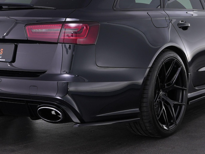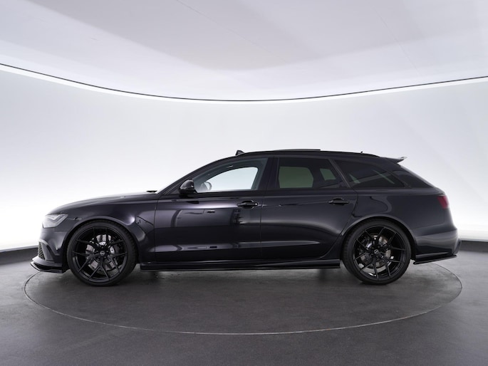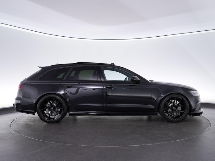 Audi RS6 Avant 4.0 TFSI V8 in de tijdloze kleur Phantom Black parelmoer!. Deze geliefde en brute gezinswagen is door de vorige eigenaar aangepast met 21" Vossen Wheels, een Maxton splitterset en een verlagingsset, waardoor de auto nog veel agressiever smoelt!