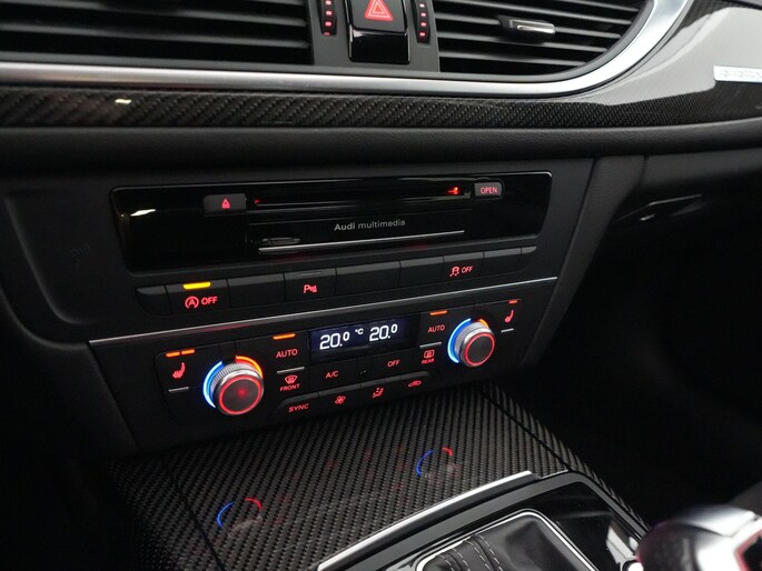 Qua uitrusting is deze RS6 voorzien van onder andere een head-up display, MMI navigatie plus met MMI touch, Audi connect, achteruitrijcamera, parkeerhulp plus, LED koplampen met grootlichtassistent, stoelverwarming voor, 4-zone automatische airconditioning, sfeerverlichting, privacy glass en een elektrisch bedienbare achterklep en is tevens uitgerust met een afneembare trekhaak.