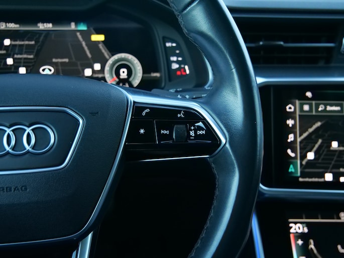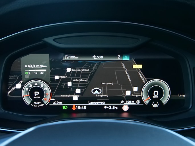Alle functies voor een veilige en zuinige rit worden overzichtelijk weergegeven op het digitale dashboard. Strak inparkeren wordt een fluitje van een cent door de achteruitrijcamera. Adaptive cruise control houdt de ingestelde snelheid vast en houdt automatisch afstand tot uw voorligger. Filerijden? Doodvermoeiend. Daarom helpt de file assistent zo nodig een handje. Door automatisch afstand te houden, en te stoppen als uw voorligger stilstaat. Deze Audi A6 Avant maakt het u makkelijk. Vandaar ook de elektrisch inklapbare trekhaak. Ook connected drive services, full map navigatiesysteem, electronic climate control, schakelpaddles aan het stuur, DAB ontvangst en regensensor zijn aan boord.