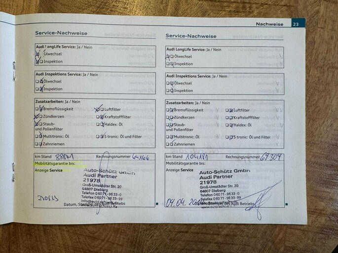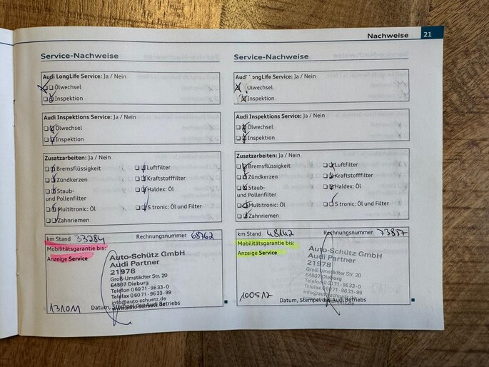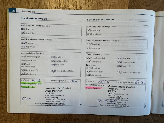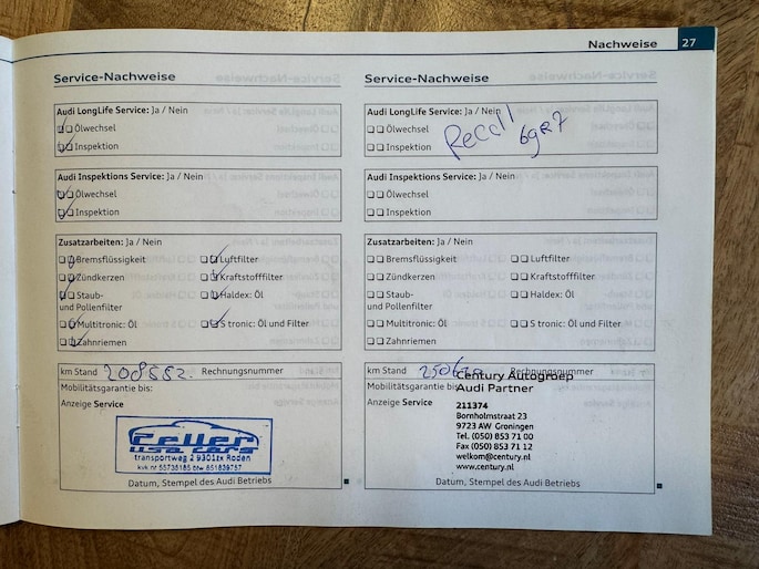 Onderhoudsboekjes: Aanwezig