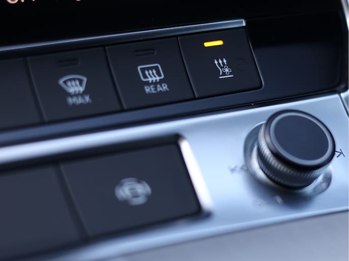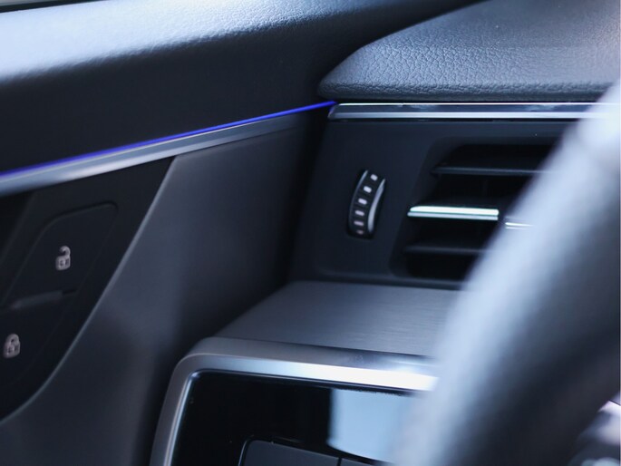 Het exterieur is uitgevoerd in het stijlvolle Vesuvgrau Metallic. Een kleur die bij zonlicht subtiel warm oogt en in de schaduw juist een stoere, bijna dreigende uitstraling krijgt. In combinatie met het S line exterieurpakket, de 21 inch lichtmetalen velgen en de zwarte accenten staat hier een Avant die net zo sportief als chique is. De HD Matrix LED-koplampen geven hem niet alleen een herkenbare, moderne blik, maar zorgen ’s avonds ook voor een indrukwekkend lichtbeeld.