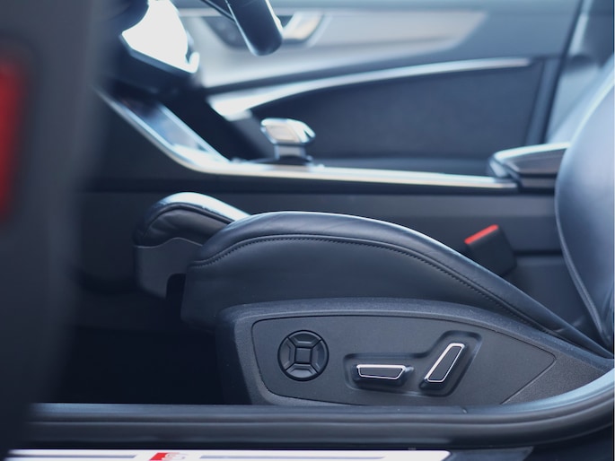 Binnenin wordt u verwelkomd door een zwart lederen sportinterieur met elektrisch verstelbare stoelen inclusief geheugen. Het MMI Navigation Plus systeem met touch response maakt het interieur hightech en strak, terwijl de aluminium inleg en sfeerverlichting zorgen voor een luxe ambiance. Alles voelt solide, doordacht en premium — precies wat u mag verwachten van een Audi in deze klasse.