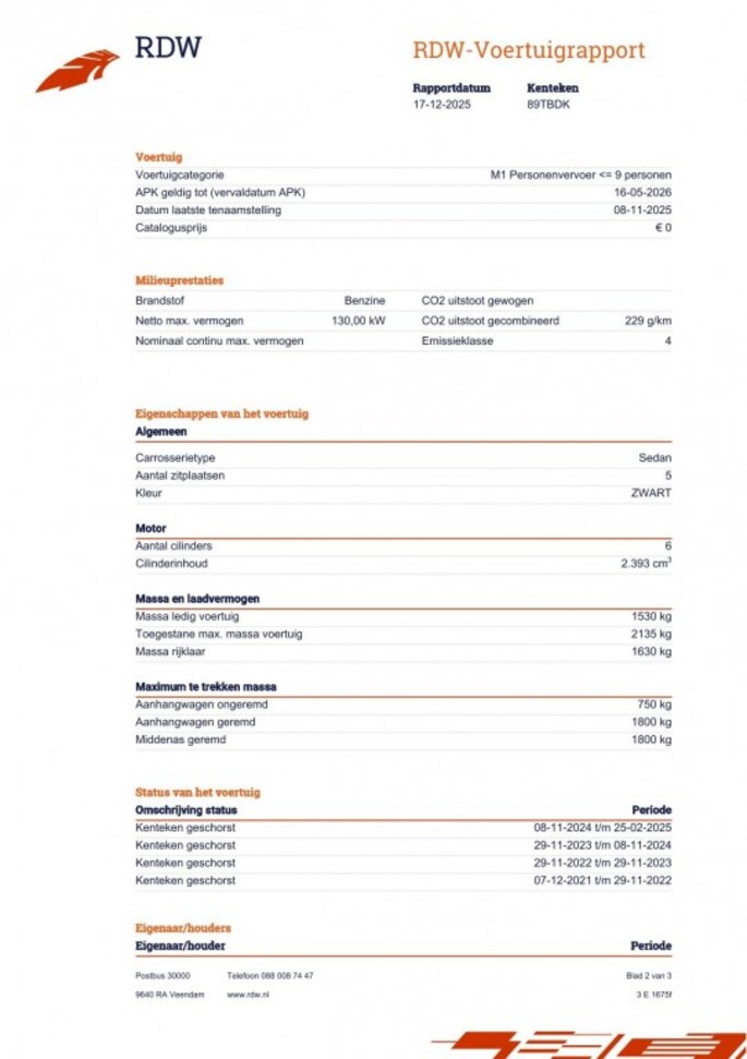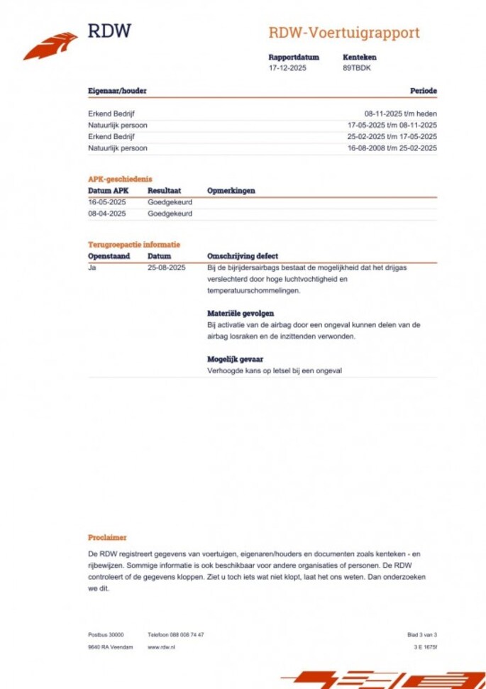 Kilometerstand gecontroleerd