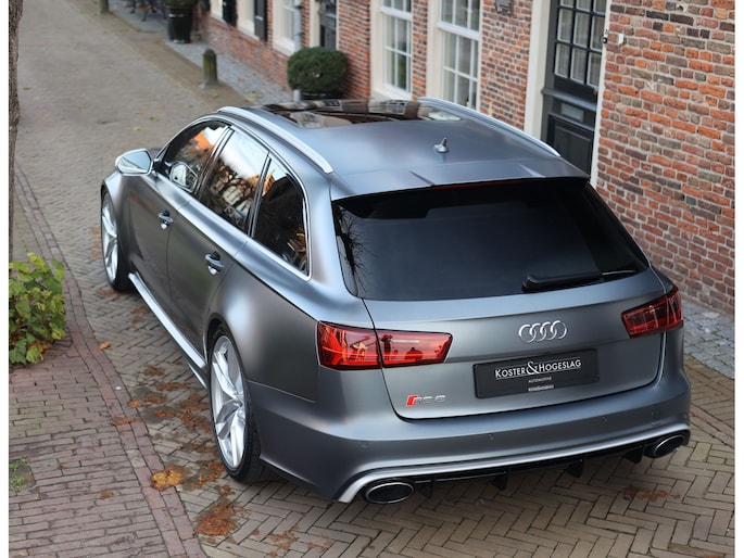 Het betreft hier een Audi RS6 Avant Performance. Dat wil zeggen dat dit exemplaar beschikt over een vermogen van 605 PK en 750 Nm koppel. Een 0 naar 100 sprint in deze station kost slechts 3,7 seconden en dankzij het Dynamic Plus pakket is de topsnelheid verhoogd van 250 naar 305 kilometer per uur. Prestaties die vandaag de dag nog even bizar zijn als het moment toen deze auto gebouwd werd.