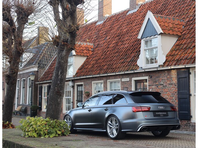 We durven wel te stellen dat de vorige eigenaar een zeer goede smaak heeft. Bij het samenstellen van deze auto is aan alle details gedacht waardoor het geheel buitengewoon bijzonder is! Deze RS6 Avant is uitgevoerd in Matte Daytona grijs wat de auto prachtig staat. De scherpe lijnen van de RS6 van deze generatie komen zeer goed tot hun recht door de matte afwerking. Daarnaast is er niet gekozen voor zwarte details zoals vaak het geval is. Nee, dit exemplaar heeft alle exterieurdetails in matte aluminium, een perfecte combinatie met het lakwerk! De spiegelkappen, raamlijsten en bumperlijsten, zelfs de velgen zijn niet zwart uitgevoerd. Pure klasse!