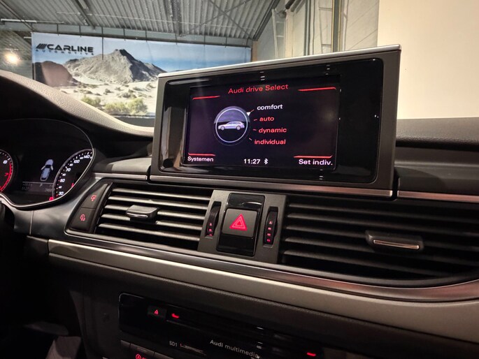Met een auto als deze Audi A6 Avant komt u absoluut goed voor de dag. Mag het een beetje exclusief en sportief? Mooi, want deze is uitgevoerd met S-Line styling. De aandrijving van deze Audi wordt verzorgd door een zescilinder motor en een automatische transmissie. Kijk, dat noemen we nou stijlvol: een fraai lederen interieur. Gecombineerd met het heerlijke gemak van de elektrisch bedienbare achterklep. Een beetje luxe is nooit weg, toch? Vandaar de stoelverwarming! De luchtvering zorgt voor beter contact met de weg en een uiterst soepele rijervaring. Door het glazen panoramadak heeft u een weidse zichthoek en geniet u van licht en een gevoel van ruimte. Xenonverlichting zorgt voor een krachtige en heldere lichtbundel. Een start-stop systeem is ook aanwezig, dat helpt u om het brandstofverbruik te reduceren. Verder is de Audi uitgerust met: sportonderstel, halflederen bekleding, warmtewerend glas, in delen neerklapbare achterbank, verstelbare lendensteunen en snelheidsafhankelijke stuurbekrachtiging.