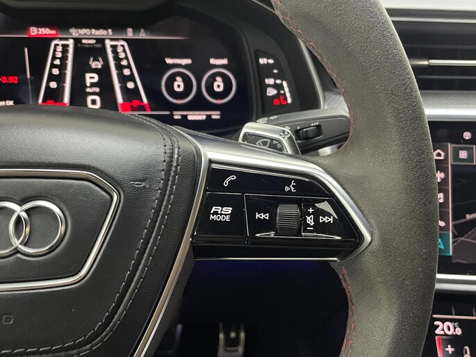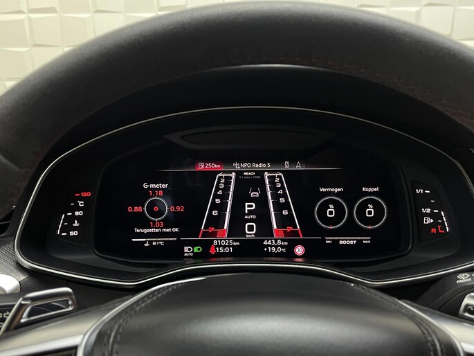 Een cockpit, een informatiecentrum... Wat is de cabine eigenlijk niet? Dankzij het digitale dashboard bent u van alles op de hoogte. De 360 graden camera biedt een beter zicht bij slechte weersomstandigheden, waardoor u beter kan anticiperen op mogelijke gevaren. Adaptive cruise control houdt de ingestelde snelheid vast en houdt afstand tot het voertuig voor u. Een smartphone met internetverbinding legt eenvoudig overal contact met de auto. U kunt functies activeren en de conditie van de auto monitoren. Het high performance audiosysteem produceert krachtige bassen en heldere hoge tonen. Met origineel navigatiesysteem, kruisend verkeer detectie, automatische airconditioning, schakel flippers aan het stuur, draadloos opladen en DAB ontvangst is deze auto helemaal compleet.