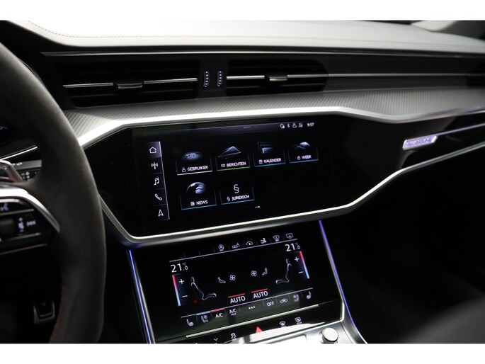 Autobedrijf John van der Rijt biedt u aan deze fantastische en super complete 600pk sterke Audi RS7 4.0 V8 Quattro uit 2019 in de kleur Daytonagrijs met 97dkm ervaring. Deze auto is o.a. voorzien van: Keramische remmerij, Panorama dak, Lane assist en file-ondersteuning, Bang & Olufsen, 360° Camera met top view en 3D view, Head-up Display, Matrix Laser LED Koplampen, DAB Radio, Keyless Entry & Go, Verkeersbordenherkenning, Elektr. verstelbare RS Sportstoelen met nappa leder en rode stiksels incl. memory, ventilatie en verwarming.
