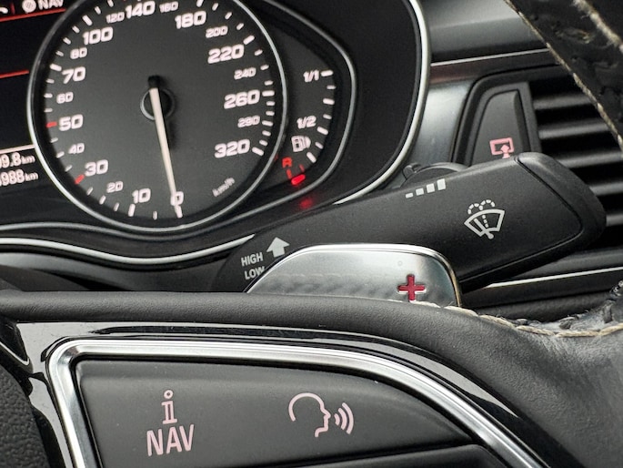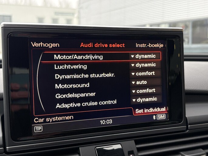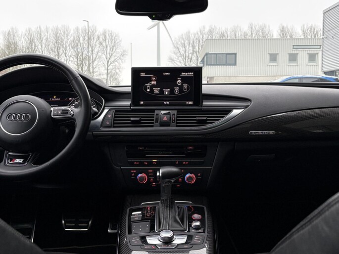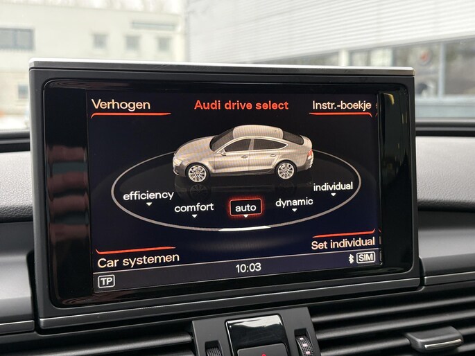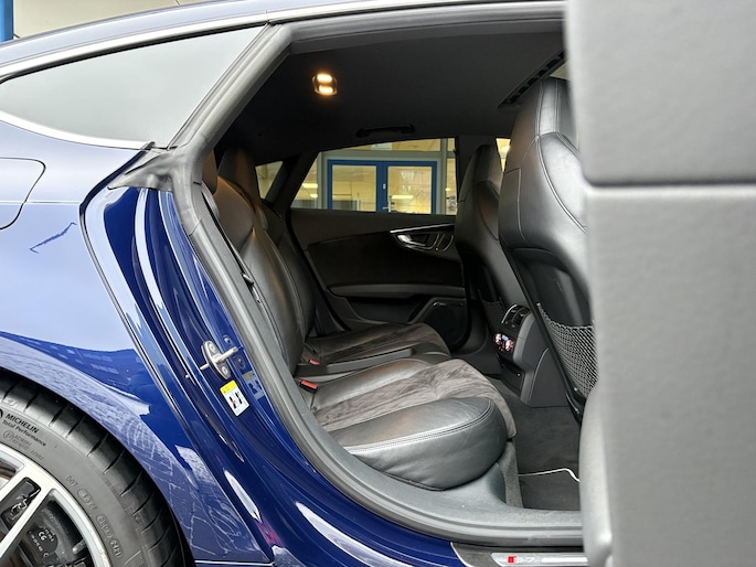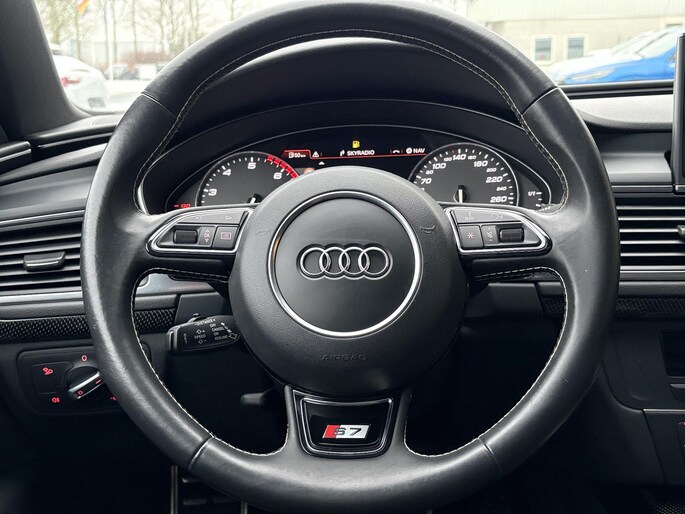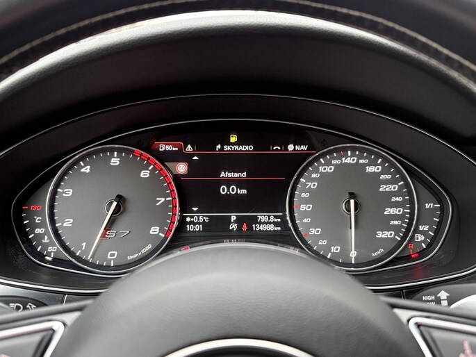 Zoals u mag verwachten van deze Audi S7 Sportback is hij uitgerust met een reeks aan actieve veiligheidssystemen. Dat de auto steeds meer taken van de bestuurder overneemt, merkt u bijvoorbeeld aan het systeem voor verkeersbord-detectie in deze Audi. Het Lane-keeping systeem let constant op en waarschuwt of corrigeert als u onoplettend over de lijnen van de rijstrook gaat. U bent mede dankzij head-up display, dodehoekdetectie en bandenspanningcontrolesysteem steeds veilig onderweg.