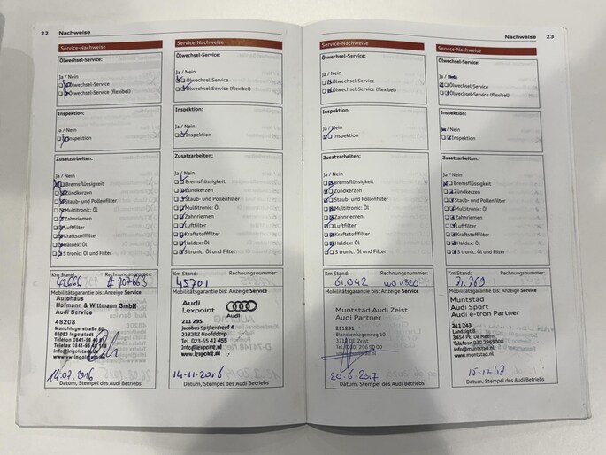 Onderhoudsboekjes: Aanwezig