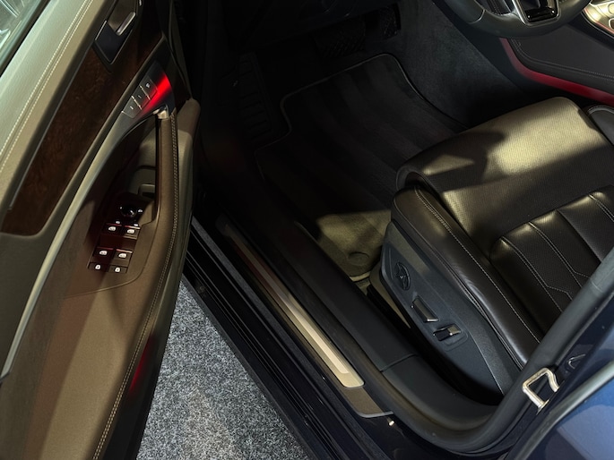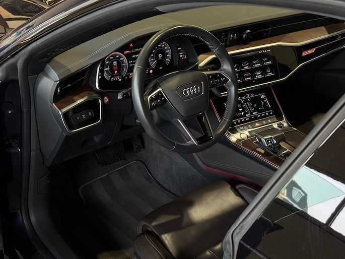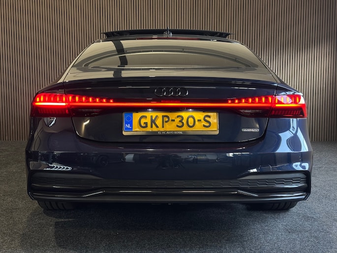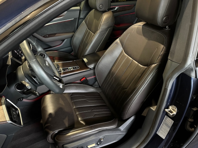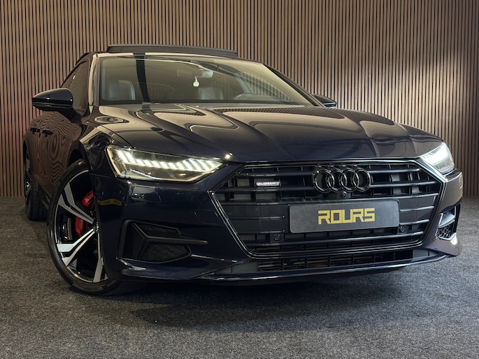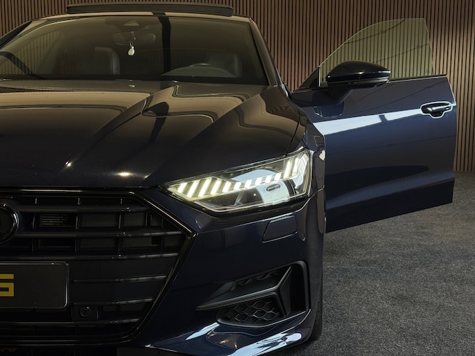 De elegante Sportback-lijn geeft de A7 zijn kenmerkende coupéachtige uitstraling zonder in te leveren op ruimte en praktisch gebruiksgemak. De diepe blauwe lak benadrukt het exclusieve karakter en laat de strakke lijnen prachtig tot hun recht komen.