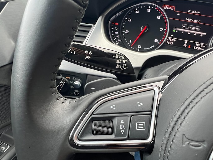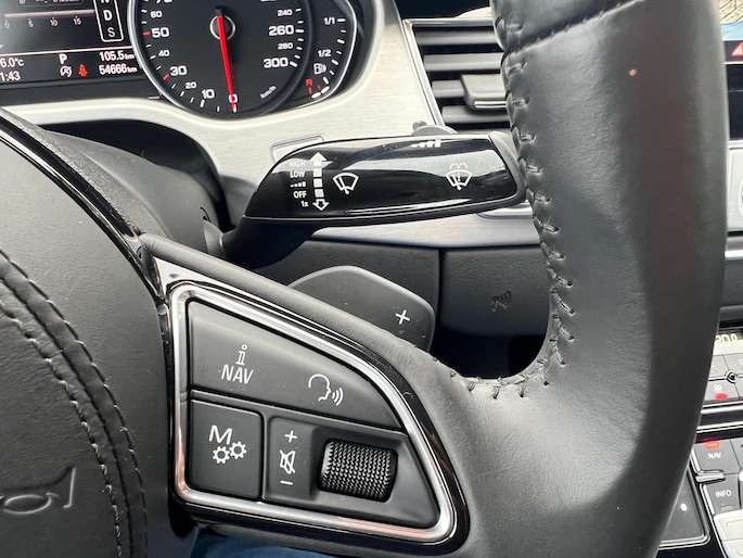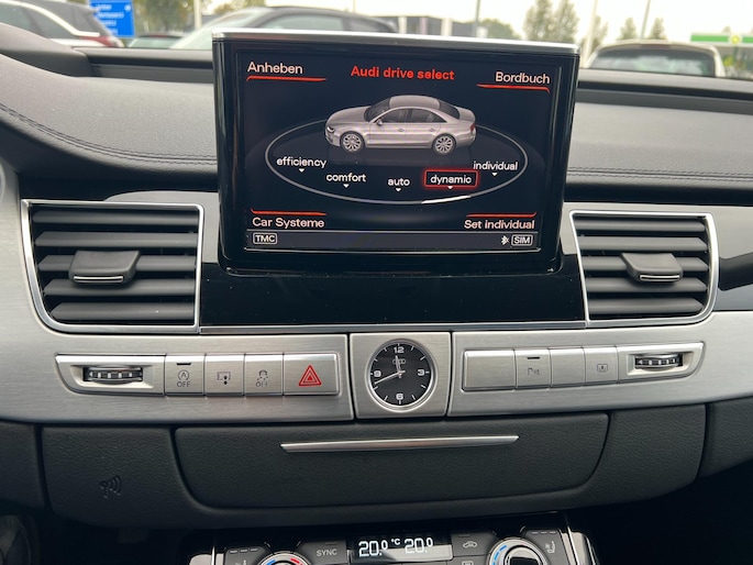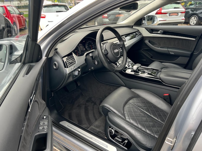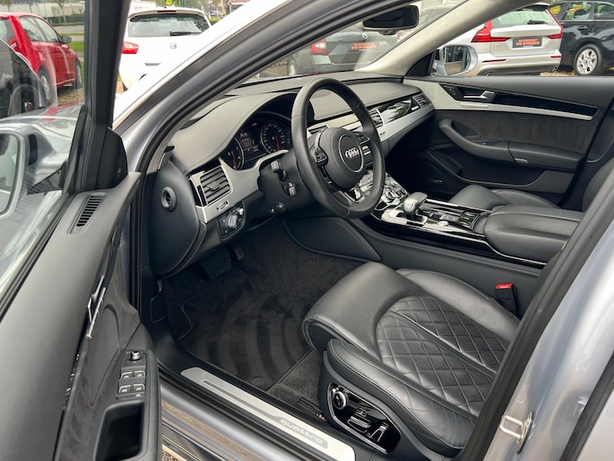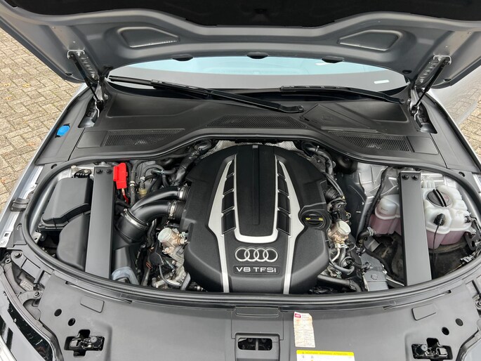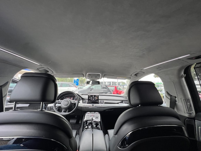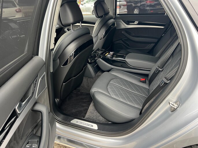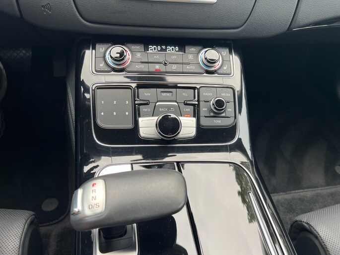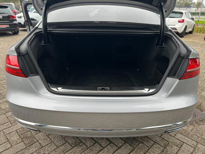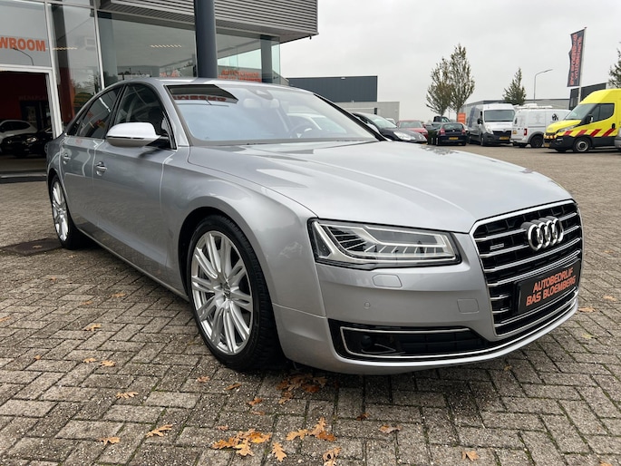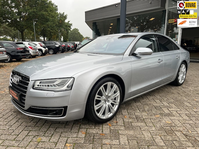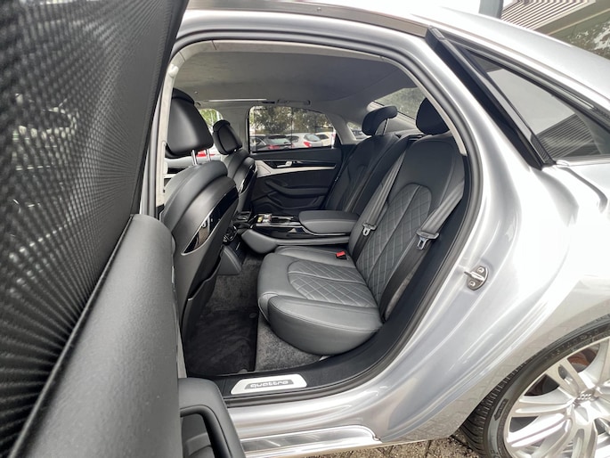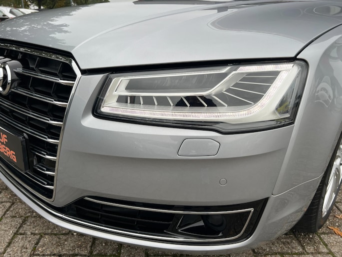 Dynamische styling, zorgvuldig afgewerkt met fraaie materialen en ontworpen met oog voor detail. De Audi A8 is van binnen en van buiten een toonbeeld van Duits design. Trap het gaspedaal in en voel de geweldige acceleratie van deze auto. Comfort en veiligheid hebben een upgrade gekregen in de vorm van luchtvering. Het interieur van deze auto is bekleed met leer voor een ongeëvenaard luxueuze uitstraling. De verwarmbare voorstoelen inclusief massagefunctie benadrukken nog maar eens dat we hier te maken hebben met een regelrechte verwenauto. Zit u goed? De stoelen zijn eenvoudig instelbaar dankzij de elektrische bediening met geheugen. Een praktische extra is de elektrisch bedienbare achterklep die opent en sluit met een druk op de knop. Voorzien van matrix LED-verlichting. De auto dimt precies dat deel van de lichtstraal waar de voor- of tegenliggers in rijden. De overige segmenten blijven aan en verlichten de weg. In deze auto profiteert u onder andere ook van: elektrische zonnerollo voor de achterruit, 20 inch lichtmetalen velgen, warmtewerend glas en snelheidsafhankelijke stuurbekrachtiging.