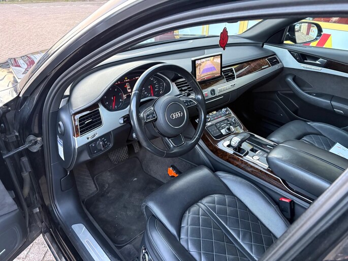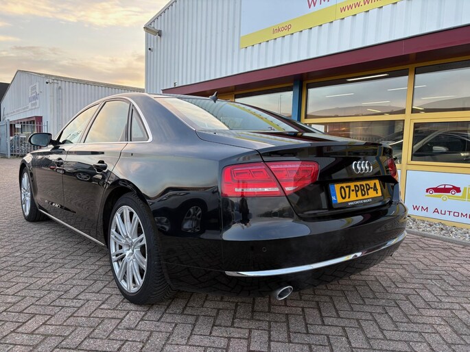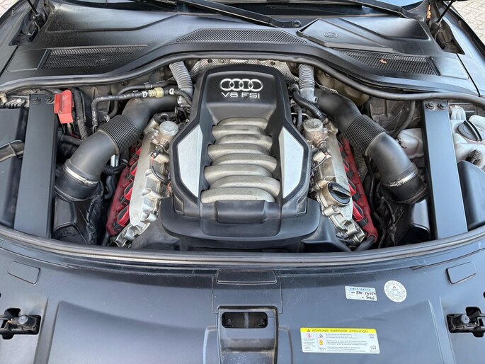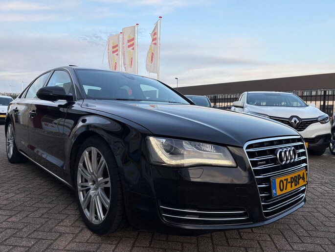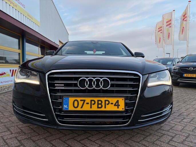 Deze Audi A8 komt uit 2011, werd geleverd van 01-01-2010 tot 30-06-2012 en kostte toen € 151.532,-. Deze originele Nederlandse personenauto staat sinds 2011 op kenteken, is voorzien van een benzine-motor, heeft een maximum vermogen van 273 kW (371 PK) en een cilinderinhoud van 4163 cc.