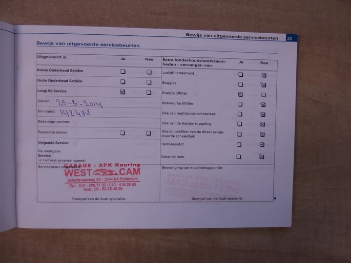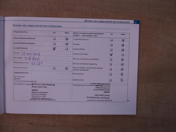 - Volledige servicegeschiedenis