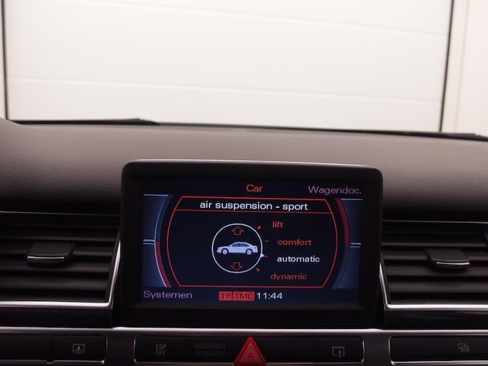 De nieuwste veiligheidssystemen komen in deze Audi A8 samen. Rijcomfort en zuinig rijden zijn mede afhankelijk van de juiste bandenspanning. Het bandenspanningscontrolesysteem houdt die permanent in de gaten.