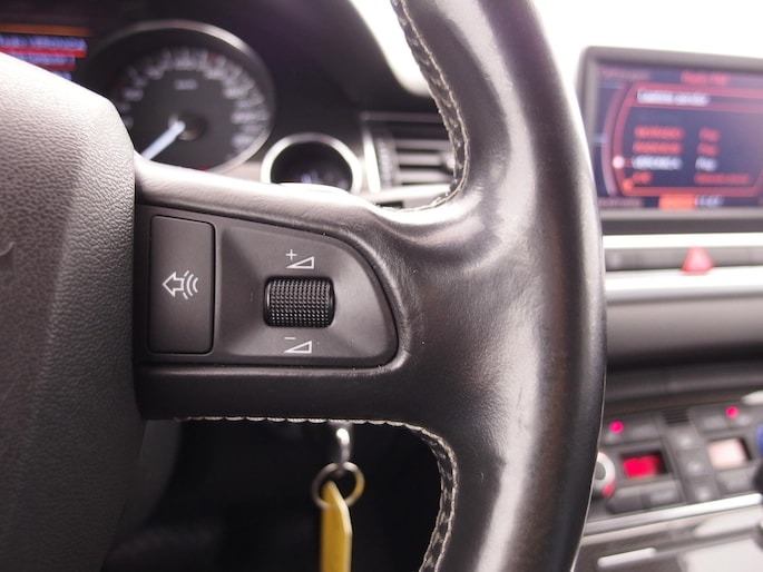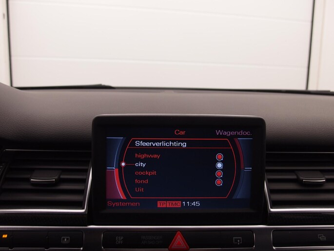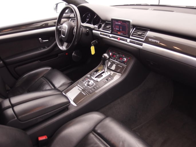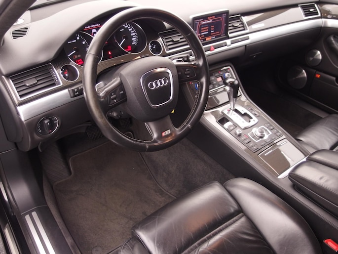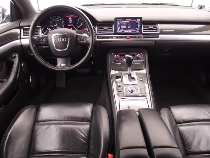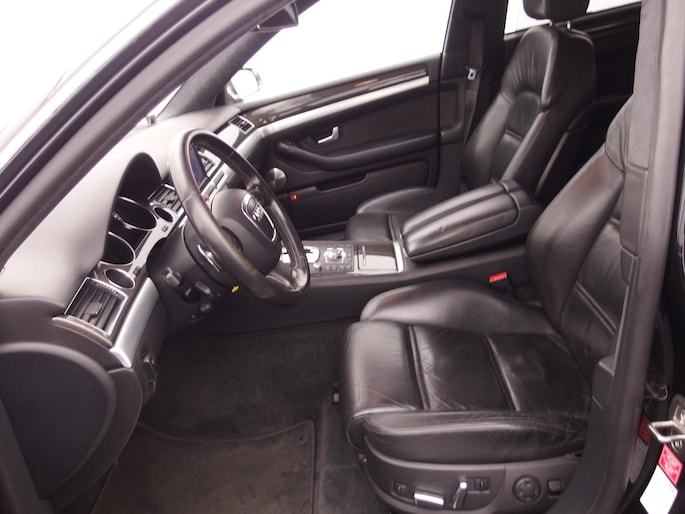 Deze Audi is voorzien van knoppen op het stuur om het navigatiesysteem en het cd-wisselaar te bedienen. Of het buiten nu warm is of koud, dankzij automatische airconditioning is het binnen altijd behaaglijk. Parkeerplekken worden er niet ruimer op. Maar met de aanwezige parkeersensoren krijgt u deze Audi A8 zonder problemen op z'n plaats. Deze Audi is bovendien voorzien van cruise control. Dus comfortabel en zuinig rijden verzekerd! De sensor van de keyless entry herkent u op korte afstand en ontgrendelt de portieren automatisch. Deze Audi is voorzien van lederen sportstuur, automatisch dimmende buitenspiegels, centrale deurvergrendeling met afstandsbediening en lederen versnellingspook.