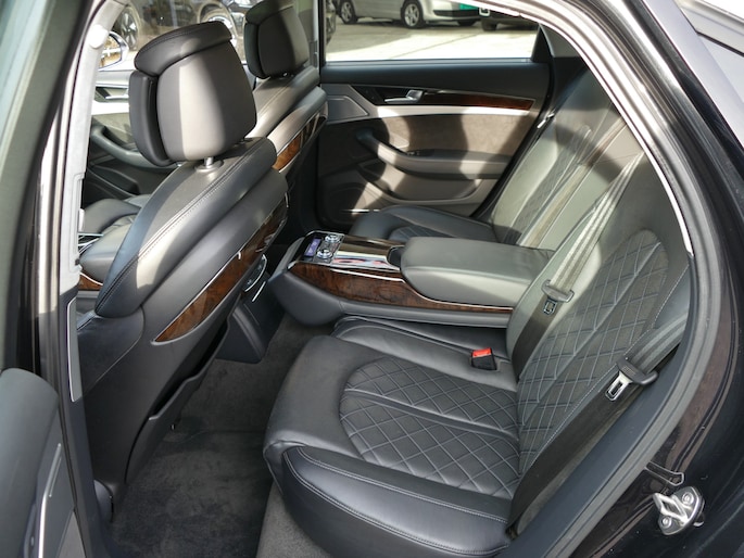 Zeer compleet uitgevoerde AUDI A8. Boven op de al royale standaarduitrusting heeft deze A8 bijvoorbeeld de luxe lederen bekleding. De voorstoelen hebben een massagefunctie en zijn niet alleen te verwarmen maar zijn ook geventileerd. Ook de achterin zijn de stoelen verwarmd en is de airco/verwarming separaat te regelen. De trekhaak klapt in en uit met slechts een druk op de knop! Hij staat op fraaie 21" velgen.