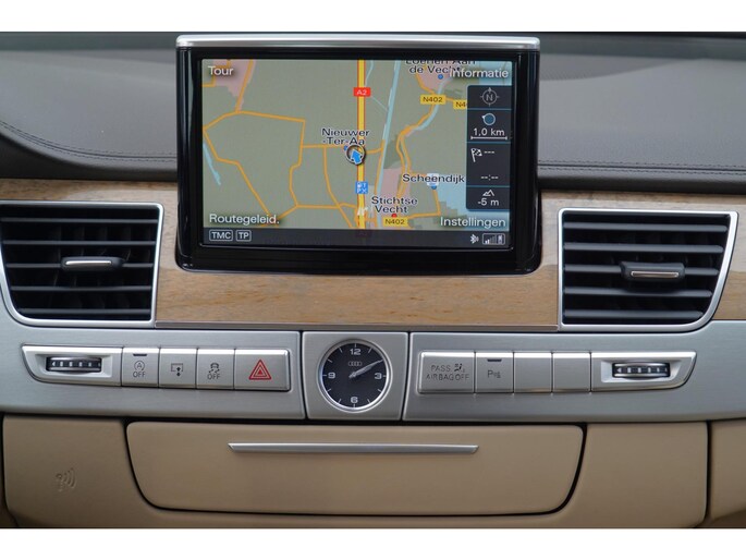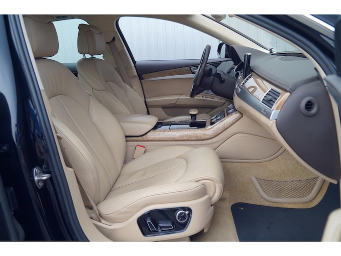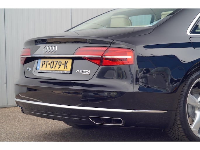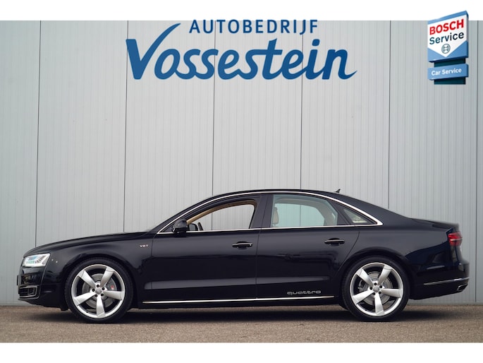 Deze schitterende Audi A8 4.2 V8 TDI Quattro is nieuw in Duitsland geleverd op 12-04-2016. Gezien de chique kleurencombinatie is deze toen op verzoek van de vorige eigenaar geïmporteerd naar Nederland op 21-09-2017. De vorige eigenaar heeft hem dus zo'n 9 jaar in bezit gehad en wij hebben de auto al die tijd onderhouden en nu ingeruild. Kortom een auto met volledige historie en welke dus maar 2 eigenaren heeft gehad. Deze auto verdient een liefhebber, dus is dit wat u zoekt? Kom dan eens vrijblijvend deze A8 bekijken in onze showroom!