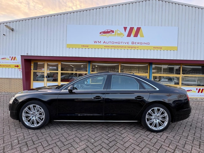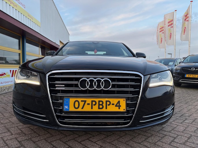 Deze Audi A8 komt uit 2011, werd geleverd van 01-01-2010 tot 30-06-2012 en kostte toen € 151.532,-. Deze originele Nederlandse personenauto staat sinds 2011 op kenteken, is voorzien van een benzine-motor, heeft een maximum vermogen van 273 kW (371 PK) en een cilinderinhoud van 4163 cc.