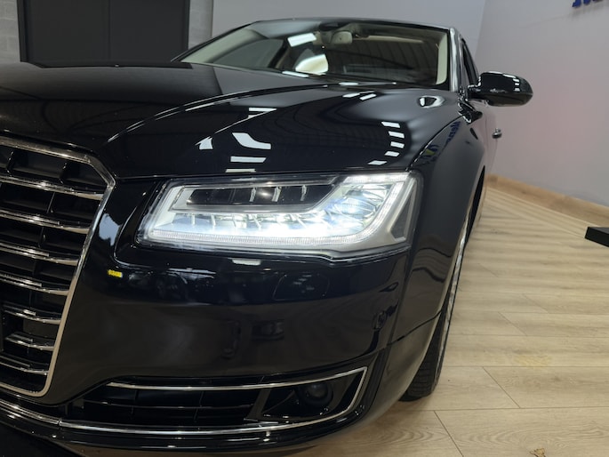 Zoals u mag verwachten van deze Audi A8 is hij uitgerust met een reeks aan actieve veiligheidssystemen. Verkeersbord-detectie herkent verkeersborden en toont deze op het instrumentarium van de auto. De auto is ook uitgerust met head-up display, dodehoekdetectie, autonoom remsysteem en bandenspanningcontrolesysteem.