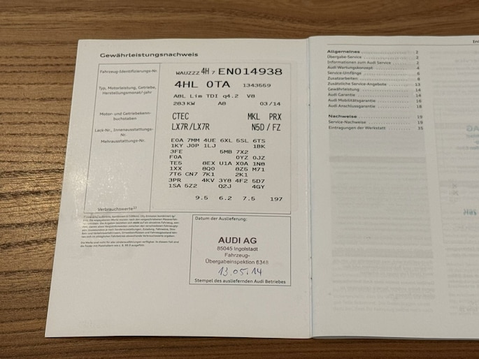 We hebben deze Audi onlangs ingeruild van een pure autoliefhebber die zorg en liefde geeft aan zijn auto. De staat waarin de Audi verkeert is ver bovengemiddeld en de - toch forse – kilometerstand is absoluut niet af te zien aan de staat. De auto is tijdens zijn bezit lokaal onderhouden door een VAG specialist. Daarvoor is het volledig dealer onderhoud geweest. De laatste servicebeurt was 29 april 2025 bij 316.719 km. Dit betrof groot onderhoud met onder meer remvloeistof.