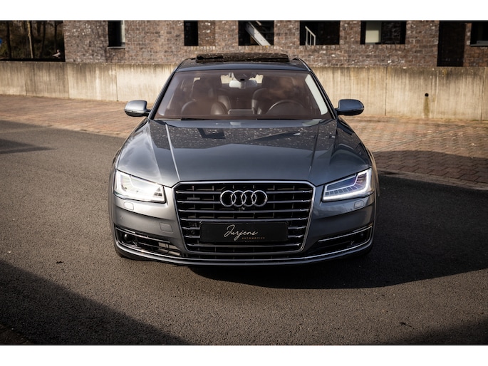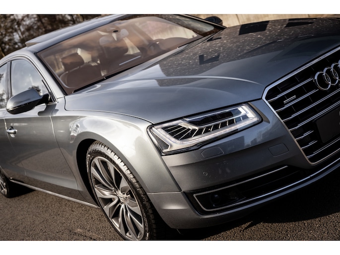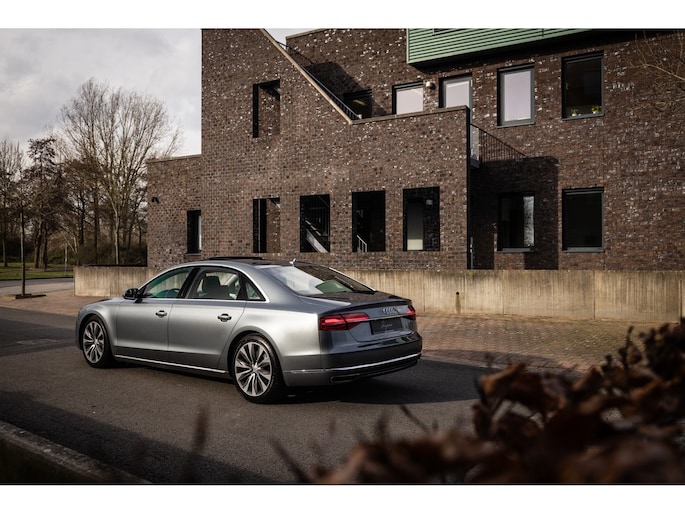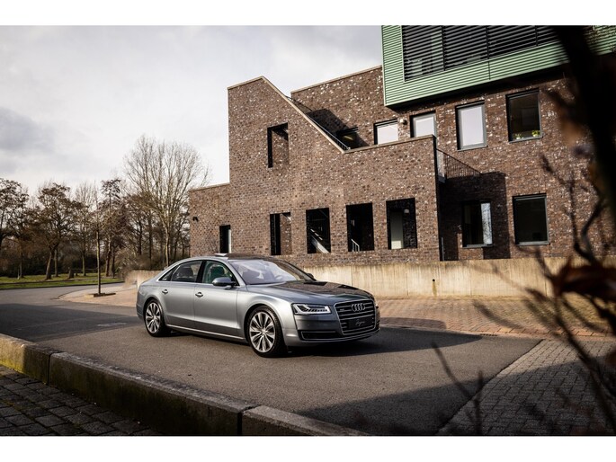 De Audi A8 – zeker in de generatie – is een limousine op het hoogste niveau. Absolute high-end afwerking en kwaliteit verzorgd tot in de kleinste details. Specifiek deze facelift generatie heeft ons hart reeds gestolen. Toch staat de beleving bij de lengte van de optielijst. Nu kon je in 2014 behoorlijk ver gaan bij Audi. Deze A8 is zo’n exemplaar. Zeldzaam luxe samengesteld met vrijwel al hetgeen dat mogelijk was. Dan hebben we het over luxe, maar de motor is eveneens belangrijk. In het vooronder ligt met recht de best gebouwde dieselmotor ooit. De onverwoestbare 4.2 V8 TDI met een onwerkelijke 385pk en een boom ontwortelend koppel van maar liefst 850Nm. Voor uw beeld. Deze limousine accelereert in slechts 4,9 seconden vanuit stilstand en is begrensd op 250 km/h.