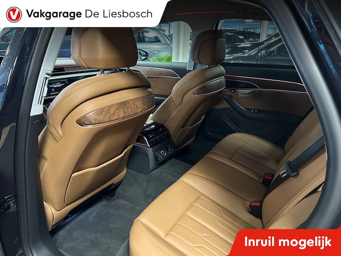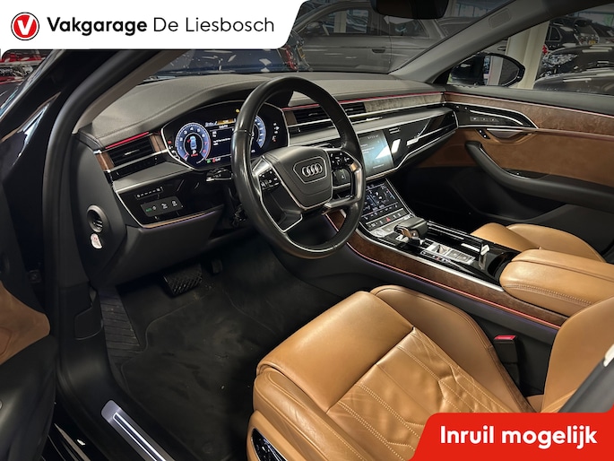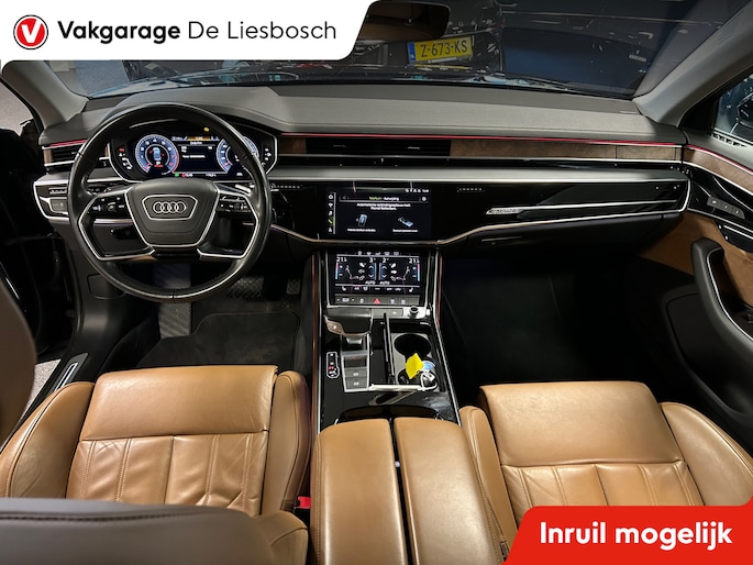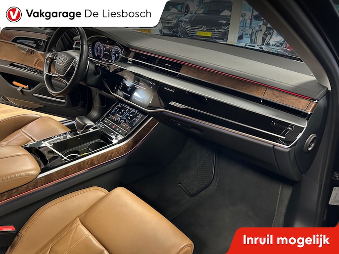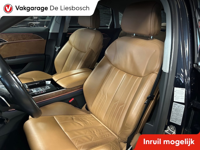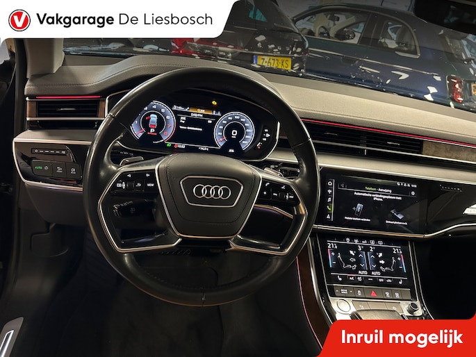 Een fantastische vormgeving en ultieme prestaties: u geniet van de weergaloze rijbeleving die deze Audi A8 u biedt. Dankzij de zescilinder motor en de automatische transmissie, is het autorijden snel en comfortabel. Maximale grip op de weg, overal en altijd: dat biedt de vierwielaandrijving. Altijd al een voorliefde gehad voor een lederen interieur? Deze heeft het. Evenals een elektrisch bedienbare achterklep. Het comfort van de stoelverwarming geeft in koude dagen nét dat beetje extra. De geavanceerde matrix LED-verlichting in de koplampen levert maximaal helder zicht en past zich subtiel aan zodra er een tegenligger komt. Zonder lichtkwaliteitsverlies! De uitmonstering van deze auto wordt gecompleteerd door onder meer elektrische zonnerollo voor de achterruit, 20 inch lichtmetalen velgen, warmtewerend glas en LED-achterlichten.