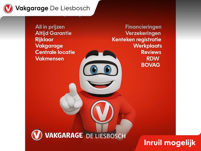 Vakgarage de Liesbosch heeft altijd een wisselend aanbod van +- 80 occasions staan. De occasions die door Vakgarage de Liesbosch aangeboden worden hebben bij verkoop en anders bij aflevering altijd een geldige APK, hier hoeft niet extra voor betaald te worden tenzij anders aangegeven. “De prijs voor deze auto is inclusief een geldige APK en 12 maanden wettelijk bepaalde garantie.