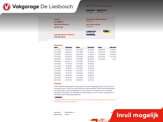 Kilometerstand gecontroleerd