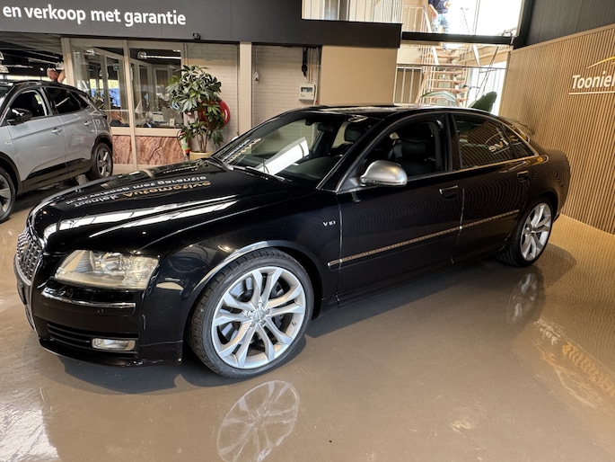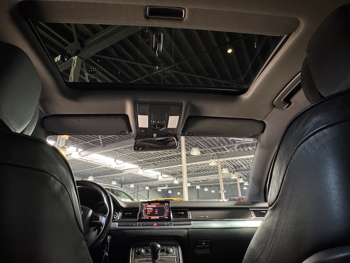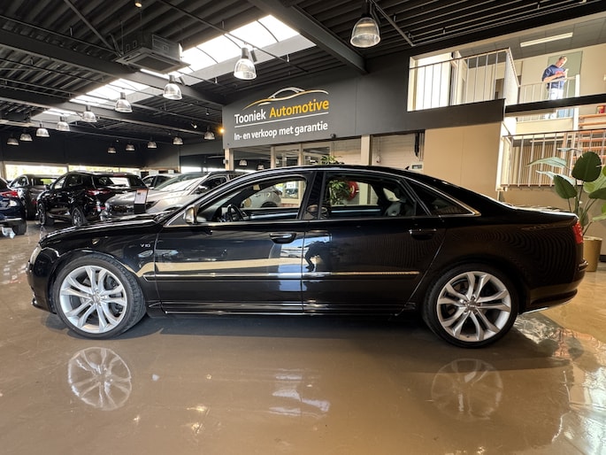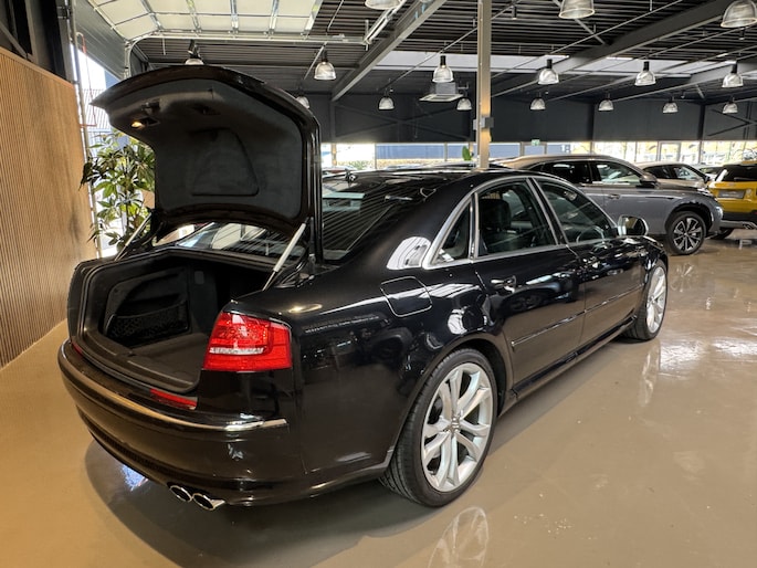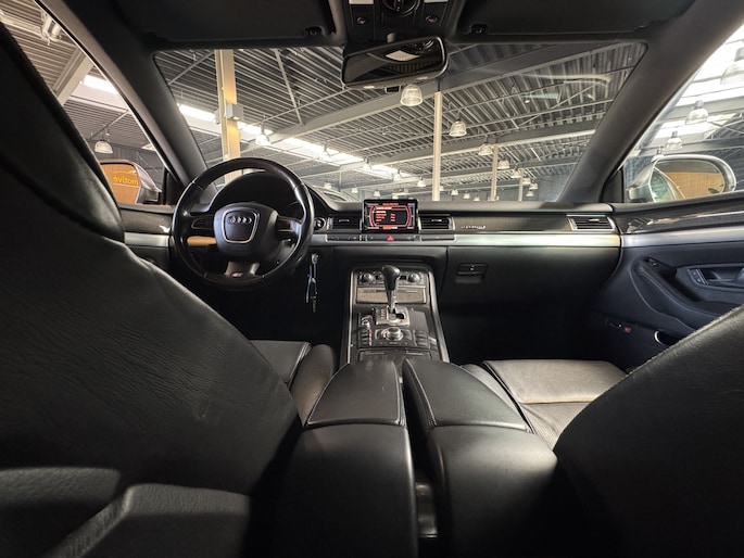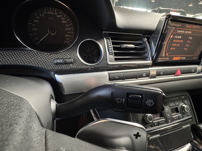 Met de knoppen op het stuur regelt u het cd-wisselaar en het navigatiesysteem, terwijl u uw blik op de weg gericht houdt. De automatische airconditioning zorgt onder alle omstandigheden voor een prettige temperatuur. U kunt bij het inparkeren natuurlijk niet aan alle kanten ogen hebben. Daarom is deze Audi A8 voorzien van parkeersensoren! Met de ingebouwde regensensor kijkt u altijd door een schone en droge voorruit. De auto activeert de ruitenwissers volautomatisch. Meer rijcomfort en minder brandstofgebruik? Even de cruise control instellen en dan ontspannen rijden! Ook lederen sportstuur, keyless entry, automatisch dimmende buitenspiegels en boordcomputer zijn aan boord.