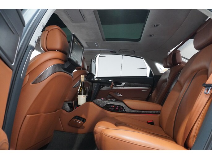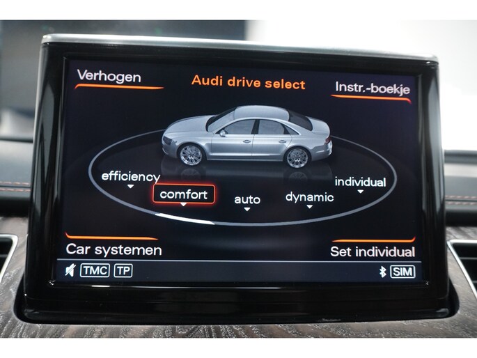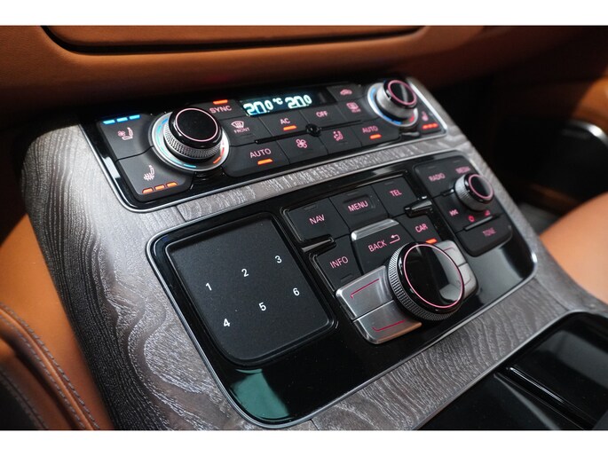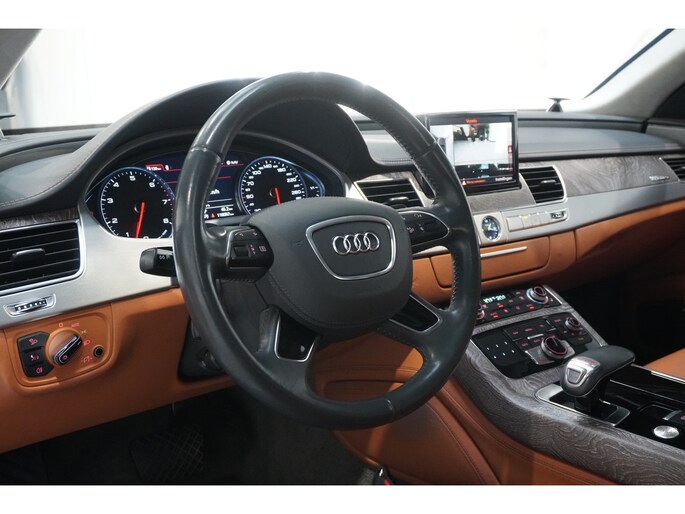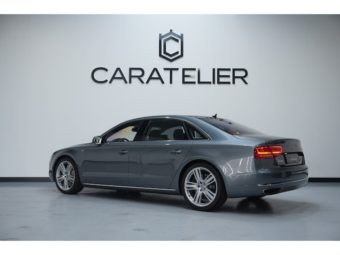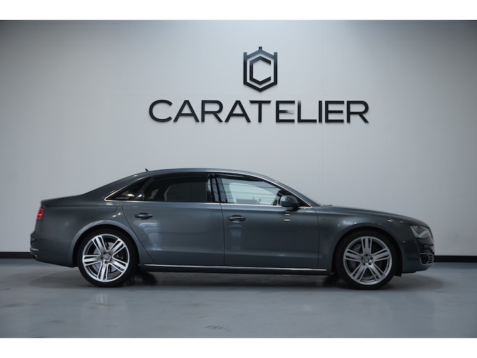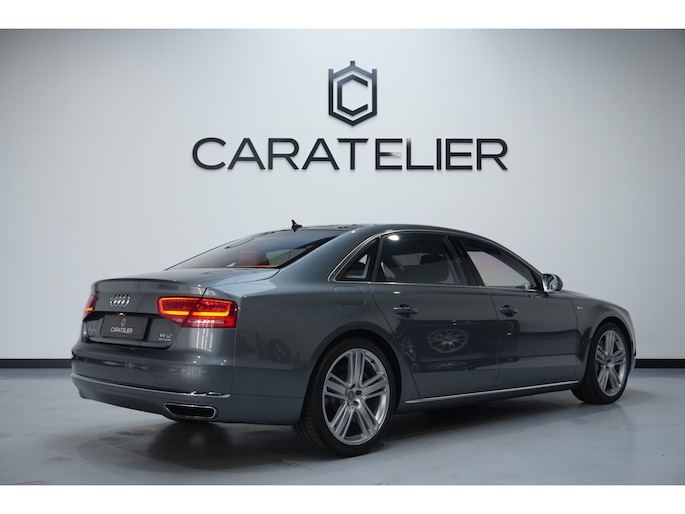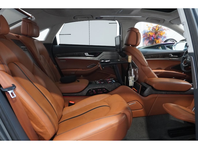 Het is niet alleen de bouwkwaliteit waar Duitse auto's om bekend staan, maar ook de rijkwaliteiten. Dat merkt u achter het stuur van deze Audi A8. De aandrijving van deze Audi wordt verzorgd door een twaalfcilinder benzinemotor en een automatische transmissie. Misschien valt u voor het lederen interieur. Maar wat een licht van binnen ook, dankzij het elektrisch bediende glazen panorama dak; en niet te vergeten het grote gemak van een elektrisch bedienbare achterklep. De massagefunctie van de verwarmbare voorstoelen is een heerlijke extra optie, waarmee u uw rug en die van de bijrijder een groot plezier doet. U past de stoelen moeiteloos aan, ze zijn elektrisch in te stellen en hebben bovendien een geheugen. Bij de zeer complete uitrusting van deze auto behoren ook elektrische zonnerollo voor de achterruit, 21 inch lichtmetalen velgen, LED koplampen, adaptief onderstel, geluidsisolerende ramen en verstelbare lendensteunen.