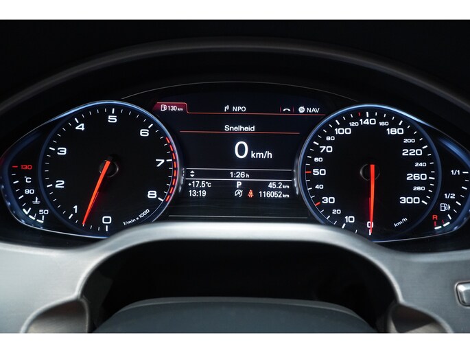 Het gebruik van de 360 graden camera op deze auto zorgt voor een groter gezichtsveld en helpt de dode hoeken te elimineren. Adaptive cruise control is een comfortabele en veilige optie. Het systeem reguleert de snelheid en houdt automatisch afstand tot uw voorligger. Formidabele geluidskwaliteit en een compleet spectrum van klank wordt geleverd door het high performance audiosysteem. Tot de standaard uitrusting van deze auto hoort ook automatische airconditioning. Superstrak parkeren wordt een eitje dankzij de parkeersensoren. De uitrusting van deze Audi is met MMI navigatiesysteem, schakelpaddles aan het stuur, digitale tv-en radio-ontvanger, regensensor, keyless entry en dvd-wisselaar behoorlijk compleet.