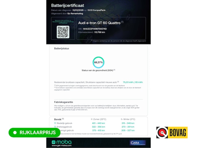 Bruikbare accucapaciteit: 88.35 kWh