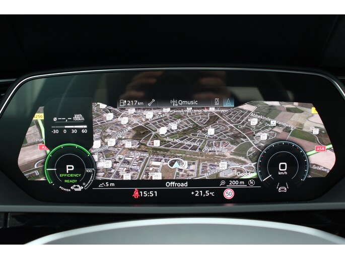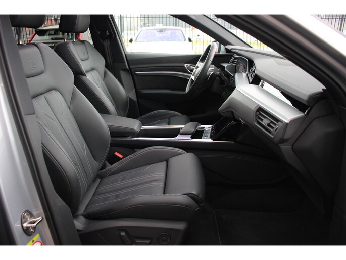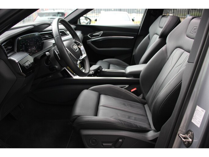 Elektrisch rijden is ontspannen rijden. Achter het stuur van deze Audi e-tron kunt u zich in alle rust concentreren op de weg. Schoon, stil en fiscaal vriendelijk: met de elektromotor is het zuinig zoeven! Het elegante exterieurdesign krijgt een sportieve impuls met het S-Line styling pakket. De krachtige motor geeft deze Audi uitstekende prestaties. Een lederen interieur is natuurlijk altijd een heerlijke plus. Maar wie van praktisch gemak houdt, wordt ook nog eens extra blij van het elektrisch bediende glazen panorama dak en de elektrisch bedienbare achterklep. Al is het buiten nog zo koud, de stoelverwarming maakt alles weer goed! De luchtvering zorgt dat de zijwindgevoeligheid wordt geminimaliseerd; dat betekent meer veiligheid en rijcomfort. Bij de rijke uitrusting horen ook 20 inch lichtmetalen velgen, adaptief dempingsysteem, aluminium dakrailing, warmtewerend glas, LED-achterlichten, verstelbare lendensteunen, metallic lak, elektrisch inklapbare buitenspiegels, LED-dagrijverlichting en in delen neerklapbare achterbank.
