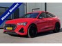PRIJS INCLUSIEF BTW! Schitterend samengesteld volledig elektrische Audi eTron Sportback 55 S Line in Catalunya Rot met black optic en slechts 54790km van de 1e eigenaar! Deze e-Tron is zeer compleet uitgevoerd met o.a. 23" lichtmetalen velgen, S-Line exterieur met zwart optiek pakket, SLine interieur met RS stoelen/supersportstoelen met zwart lederen bekleding, elektrische stoelverstelling en geheugen, stoelverwarming, elektrisch verstelbaar stuurwiel, zwarte hemelbekleding, luchtvering, matrix LED koplampen en LED achterlichten met dynamische knipperlichten, Bang & Olufsen HiFi, navigatie met multimedia, DAB en bluetooth, Head-Up display, Virtual Cockpit, elektrisch glazen panoramadak, keyless entry, elektrische achterklep, privacy glass, 4-zone climate control, adaptieve cruise control, PDC voor en achter met achteruitrijcamera en 360 graden camera (surround view), licht- en regensensor, dodehoekdetectie, lane assist, laadpoort links en rechts, enz. Volledig dealeronderhouden Audi van de 1e eigenaar met complete historie en complete set sleutels! De prijs voor deze sportieve elektrische SUV inclusief SOH rapport, onderhoudsbeurt volgens schema, nieuwe APK en 12 maanden garantie t.w.v. € 1.295,- is € 43.745,-.
