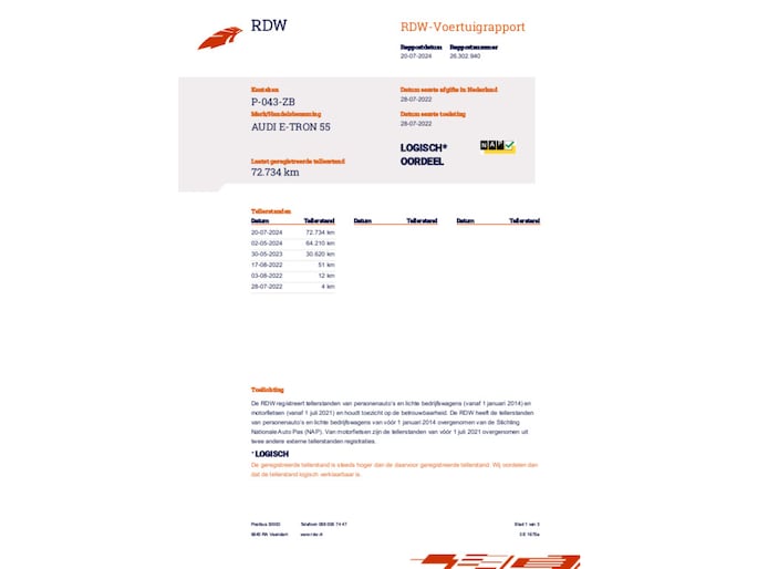 Kilometerstand gecontroleerd