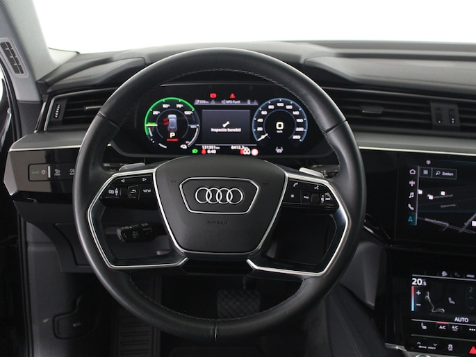 Geavanceerde technologie verpakt in aantrekkelijk design. Met deze Audi e-tron rijdt u elektrisch in stijl. Met zijn krachtige elektromotor biedt deze auto een uitzonderlijk rijgenot. De krachtige motor geeft deze Audi uitstekende prestaties. De klasse komt van het lederen interieur en het slimme gemak van de elektrisch bedienbare achterklep. In de verwarmbare voorstoelen zitten is elke keer een welkom gevoel. Wat een comfort, wat een wegligging! De luchtvering en de comfortstoelen maken elke rit gerieflijk. Onderweg heeft u extra veel te zien dankzij het glazen panoramadak. U wordt in deze auto ook getrakteerd op 20 inch lichtmetalen velgen, LED koplampen, halflederen bekleding, adaptief dempingsysteem, warmtewerend glas en in delen neerklapbare achterbank.