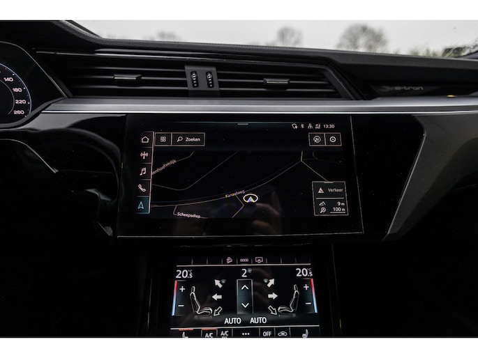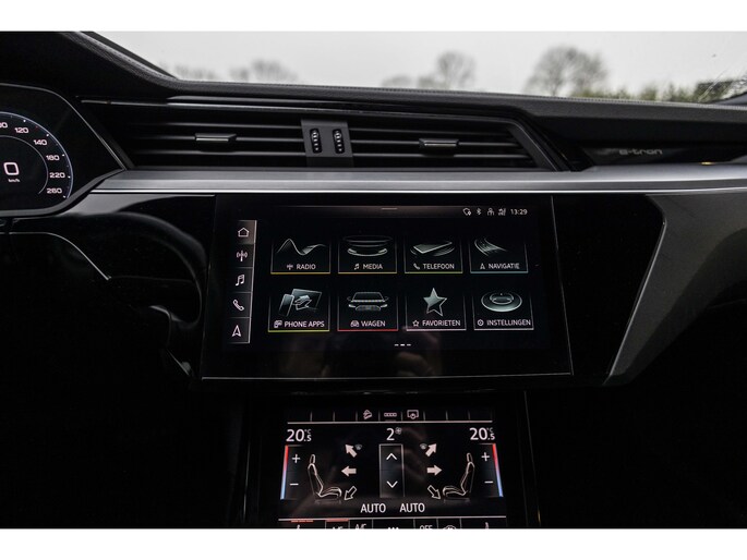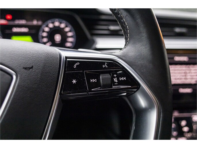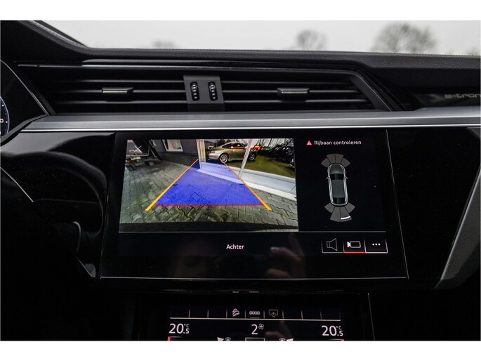 Zoals u mag verwachten van deze Audi e-tron Sportback is hij uitgerust met een reeks aan actieve veiligheidssystemen. Voorzien van het Lane-keeping systeem. Ofwel: blijf automatisch in je baan. Veel aanrijdingen bestaan uit kop-staartbotsingen. De forward collision warning reduceert dat risico aanzienlijk. In deze Audi vinden we verder een dodehoekdetectie, brake assist en bandenspanningcontrolesysteem.
