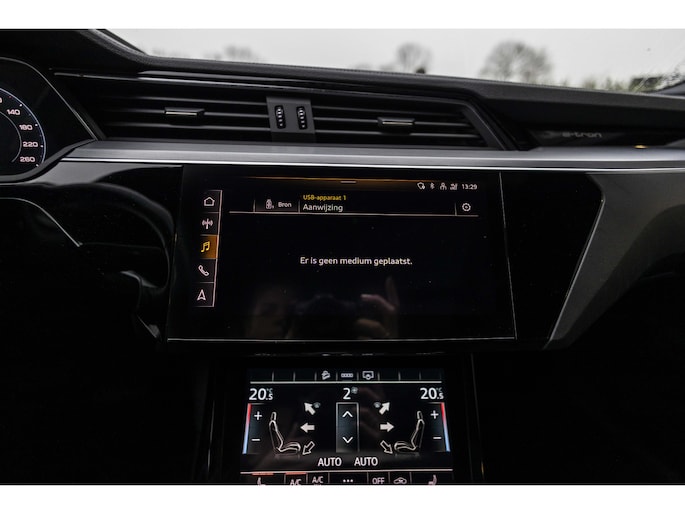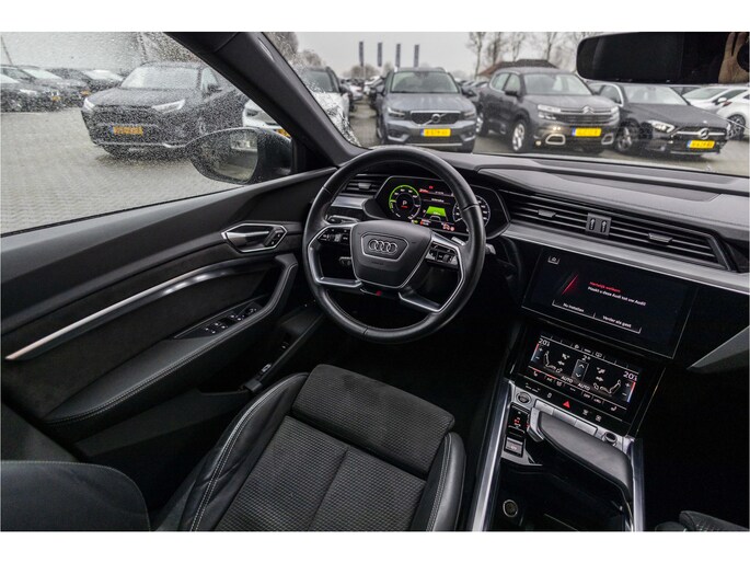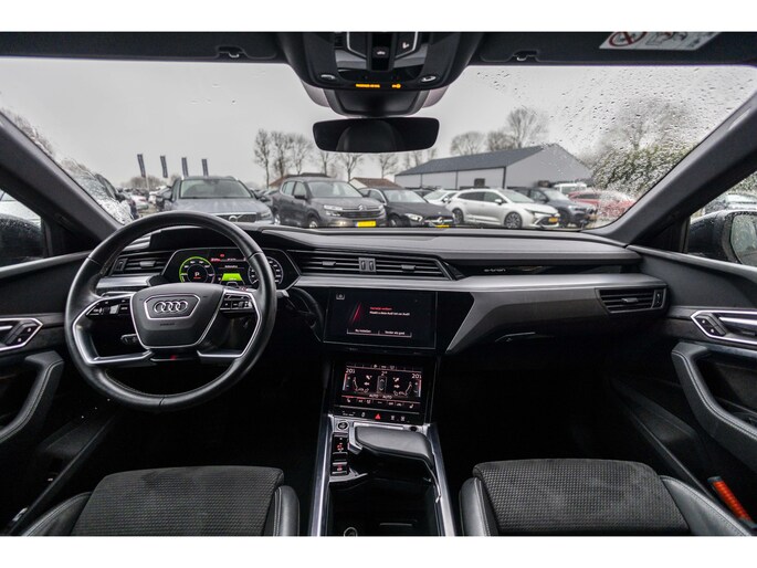 Stijlvol design en topprestaties zonder emissies. Deze Audi e-tron Sportback verbindt elegante lijnen met krachtige elektrische aandrijving zonder schadelijke uitstoot. Power, stilte en nul procent uitlaatgas krijgt u met de elektromotor. Sportief, stoer en net even anders dan anders, mede dankzij de S-Line styling. De auto is van het bouwjaar 2020 en is van de eerste eigenaar. Een krachtige motor geeft deze auto zijn sportieve prestaties. Laat de zon maar schijnen door het elektrisch bediende glazen panorama dak en hou een handje over dankzij de elektrisch bedienbare achterklep. Niks vergeten? O ja toch: het lederen interieur moeten we zeker even noemen. Neem plaats op de comfortabele stoelen. Dankzij de elektrische bediening en het geheugen is het eenvoudig om hierin de beste zitpositie te vinden. Het maakt niet uit hoe slecht het wegdek is. De luchtvering strijkt alle oneffenheden glad. Bij de zeer complete uitrusting van deze auto behoren ook 20 inch lichtmetalen velgen, LED koplampen, adaptief dempingsysteem, zwarte hemelbekleding, donker getint glas achter en in delen neerklapbare achterbank.