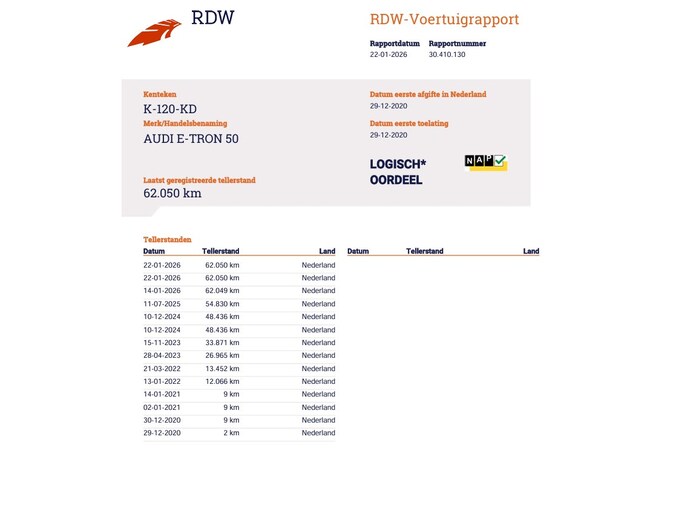 Kilometerstand gecontroleerd