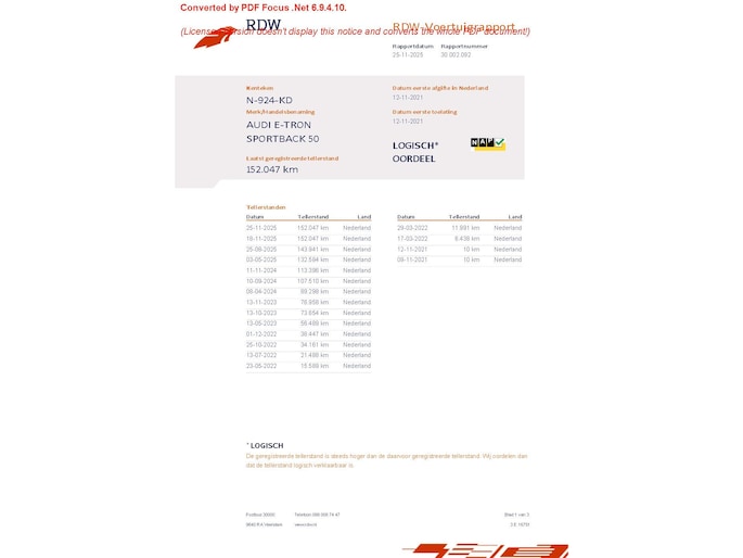 Kilometerstand gecontroleerd